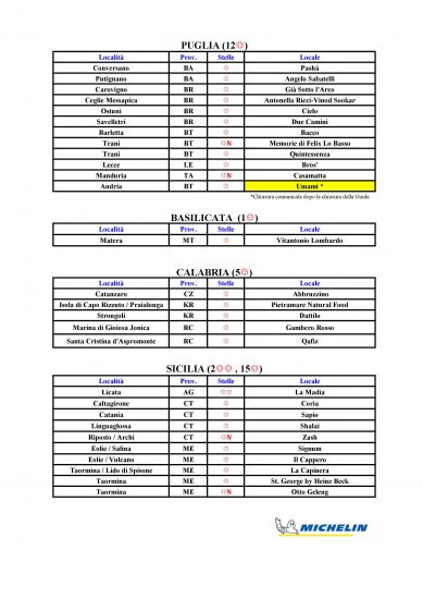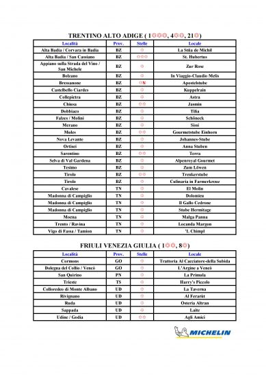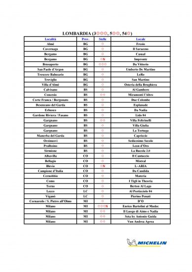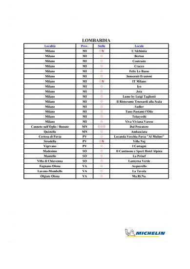 At the regional level, Lombardy is the most starred region, with 6 new entires: 62 restaurants (three with 3 stars, 5 with 2 stars and 54 with 1 star), in front of Piedmont with 46, Campania with 44, Tuscany with 40 and to the Veneto with 37. While Emilia Romagna, which for years in partnership with Michelin has hosted the presentation of the guide, for two years in Parma, and this year in Piacenza, with 33 premises, is queen of the Bib Gourmens (locals where you eat well with less than 35 euros, 266 in total in Italy).
