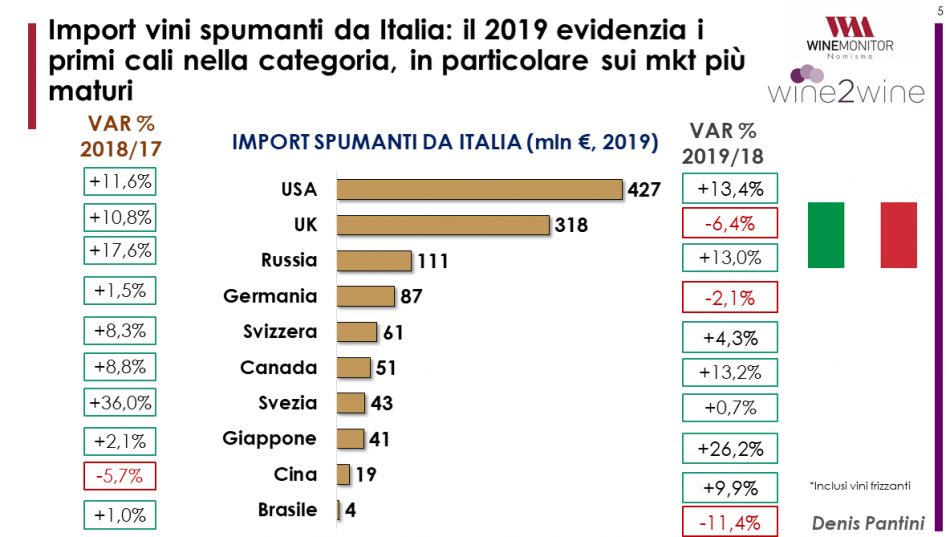 Turned negative Great Britain (-2.8%), due to a sharp decrease in demand for Italian sparkling wines, Sweden (-0.8%) and China (-3.8%), where, however, the Belpaese will do better than the average import of the Dragon thanks to a good recovery in the second half of the year.