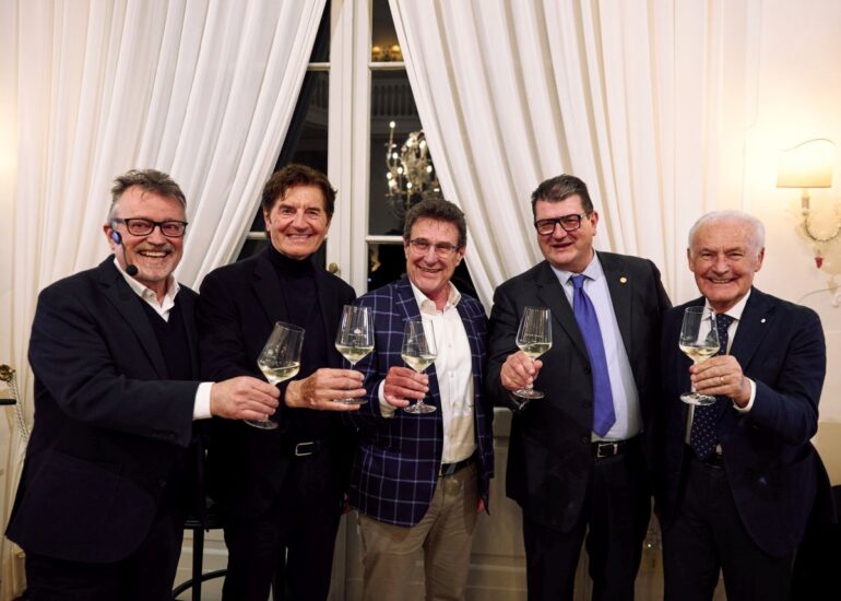 Italian product. Emotions rose as the story unfolded, in the hall of the Palladian-style, early seventeenth century Villa, through Giordani’s music and images. The journey began in 1838, upon Antonio Carpené’s instinct. He was a scientist, and the inventor of the method that was a forerunner of modern autoclaves, which he advertised by holding speeches standing on farm carts. In 1868, the Carpené-Malvolti foundation, which brought Prosecco - at that time called “Champagne Italiano”, as written on the label, and sold with its partner, Malvolti - to the Universal Exhibition in Vienna, in 1873. Then, the tragic and devastating events of the Great War destroyed the territory, and in 1918 the Carpené-Malvolti factory was also destroyed, to be rebuilt 4 years later. In 1922, the rebuilt company showcased its product on eloquent advertising posters, telling the story of the territory, including the wind that blows from the Pre Alps onto the hills of Conegliano, also narrated in great detail. Consequently, Prosecco received great attention and the impetus of important researchers, which continues to today, such as Giovanni Dalmasso. However, at that time, Prosecco stayed within the borders of the Veneto region. Then, another disastrous conflict began, the Second World War, when Ernest Hemingway, who drove ambulances for the Red Cross, discovered the light wine of the Treviso hills. Again, vineyards were ruined, more than 1.200 hectares were destroyed, which prompted Giuliano Bortolomiol, who, in 1946, rode through the hills on his “Guzzino rosso” (red Guzzi motorcycle), to rally the producers, and founded the Confraternita del Prosecco. Furthermore, he produced the first Brut in the area in 1962 (and, in the same year, the Consorzio del Prosecco di Conegliano e Valdobbiadene was founded by 11 producers, which would then lead to the DOC in 1969, ed.). These were the years of the economic boom, “ schei” (slang for money) in the North-East was the fad, and Vicenza’s GDP was equal to all of Greece’s. These were the years of industries in Veneto, Porto Marghera and class conflicts, as well as the years of “everyone goes to the seaside”, and the beaches of the Veneto area were full of tourists. There were very few bottles of wine, which were “decanted” in restaurants and bought in demijohns to bottle at home. In Jesolo, Cartizze was an immense success among Austrian and German tourists. And, in 1981, the cinema became interested, like in the film, starring Nino Manfredi, “Nudo di Donna” (portrait of a nude woman), who while drinking Prosecco exclaims “Bono. What is it, Bortolomiol?”, as well as episodes in films starring Marcello Mastroianni and Alberto Sordi. It continued to grow until the epochal turning point that started the global success of Prosecco, in all directions. Glera was acknowledged as the synonym of the Prosecco grape variety - which meant the wine that bears this name was protected, as in the case of the dispute with the Croatian Prošek - and Prosecco DOC in July 2009. At the same time, they achieved the Guaranteed Designation of Origin (DOCG) for Conegliano Valdobbiadene and Asolo. One of the architects that changed the history of Prosecco was Luca Zaia - then Minister of Agriculture and now Governor of the Veneto Region for two mandates running- who indicated the stages of the journey, all the way up to planting the first vine shoot in the village of Prosecco in the Trieste area, a geographical name on which the name of the vine was based. He also recounted the turning point, when UNESCO acknowledged the Hills planted with Prosecco vines. It was “a difficult and adventurous game that lasted about ten years, and allowed us to obtain the pillar on which to promote the territory”, President Zaia said.