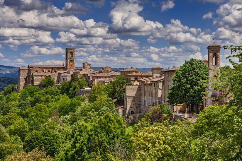 Continuando lungo la Via Francigena, giungiamo a Colle Val d’Elsa, la “Città del Cristallo”, centro in cui vi si realizza il 95% della produzione italiana e il 14% di quella mondiale del prezioso vetro, utilizzato anche nella creazione di calici e decanter per il vino. Nel corso dei secoli il borgo, per la sua posizione a metà strada tra Firenze e Siena, è stato oggetto dell’antica rivalità tra le due città, e il 17 giugno 1269 fu teatro di uno scontro proprio tra i ghibellini di Siena e le truppe fiorentine guelfe. L’episodio è narrato da Dante nella Cornice degli invidiosi per bocca della gentildonna senese Sapia, moglie di Guinibaldo Saracini e zia di Provenzano Salvani, che era alla guida delle truppe senesi. Sapia vide probabilmente lo scontro poiché viveva confinata a Colle, essendo stata bandita da Siena a causa della sua fede guelfa. Nei versi danteschi la senese Sapia esprime la propria gioia per la sconfitta subita dai concittadini ghibellini da parte dei fiorentini guelfi: “eran li cittadin miei presso a Colle/ in campo giunti co’ loro avversari,/ e io pregava Iddio di quel ch’e’ volle./ Rotti fuor quivi e vòlti ne li amari/ passi di fuga; e veggendo la caccia,/ letizia presi a tutte altre dispari/ Tanto che volsi su l’ardita faccia/gridando a Dio: Omai più non ti temo! (Purgatorio, Canto XIII vv. 108-122). Tutta la zona di Colle Val d’Elsa vanta anche tradizioni vitivinicole risalenti all’epoca etrusco-romana, per cui il territorio si è modellato nel tempo in funzione della vite, assumendo caratteristiche di straordinaria bellezza grazie ai vigneti da cui nasce il Chianti, nella sottozona Colli Senesi.