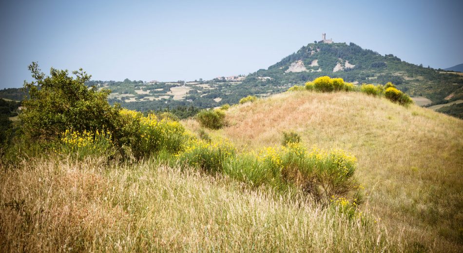 Usciti da Siena la Via Francigena attraversa la campagna più bella del mondo: la Val d’Orcia, Patrimonio dell’Umanità dell’Unesco, tra la Montalcino del Brunello ed i filari dove nasce la Doc Orcia. Circondata dai pregiati vigneti di Brunello, una tappa alla millenaria Abbazia carolingia di Sant’Antimo a Montalcino, visitata ogni anno da milioni di pellegrini moderni ed enoturisti, è un viaggio nel tempo all’epoca d’oro in cui la Via Francigena era tra le vie religiose e del commercio più trafficate, ed ai cui scambi culturali si deve proprio il sorgere di un luogo tanto importante nella storia del romanico in Toscana ed in Italia. La bellezza del paesaggio in cui i campi di cereali dominano il panorama alternandosi con pascoli, piante di ulivo secolari e vigne, caratterizza anche tutto il territorio di produzione del Vino Orcia, a metà strada tra il territorio del Brunello e quello del Nobile di Montepulciano, variando dall’aspetto lunare delle Crete Senesi alle dolci colline con file di cipressi, castelli, abbazie, poderi ed antichi borghi medievali. Tra i Comuni della Denominazione, c’è Radicofani, l’ultima tappa dell’itinerario dantesco al confine della Toscana con il Lazio. La sua splendida fortezza ha avuto un ruolo fondamentale nel controllo e difesa dell’antica Via Francigena, confine strategico tra il territorio di Siena e lo Stato Pontificio. Il suo nome è legato alla figura del ribelle ghibellino Ghino di Tacco che, intorno al 1290 occupò il Castello di Radicofani diventandone il padrone. Ghino è stato definito “castigatore di ingiustizie e di potenti”, Dante lo cita nel Girone dei morti per forza, o dei morti di morte violenta: “Quiv’era l’Aretin che da le braccia/ fiere di Ghin di Tacco ebbe la morte” (Purgatorio, Canto VI, vv. 13-14). Talvolta invece viene considerato un audace bandito: un “Robin Hood” all’italiana. Terminato il percorso virtuale non resta che mettersi in viaggio, “a riveder le stelle”, calice alla mano.