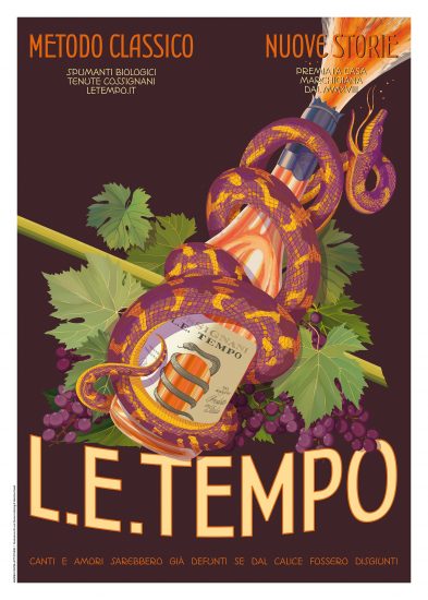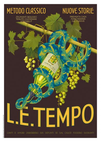 Firmati dall’artista Luca Zamoc e dalla type designer Valentina Casali con la direzione artistica di Andrea Castelletti, i manifesti pubblicitari a tema enoico con protagonisti i Metodo Classico Blanc de Blancs a base Pecorino e il Rosé a base Sangiovese, immaginati a partire dall’etichetta con il serpente che avvolge l’uovo cosmico, sostengono con parte del loro ricavato i progetti della Fondazione Buzzi per l’Ospedale dei Bambini di Milano con la campagna “AgatoDemoni”, ispirata ad Agathos Daimon, mitologico demone buono, fautore di perpetua abbondanza per campi di grano e vigneti, ma pure portatore di fortuna commerciale nelle botteghe in cui veniva molto spesso rappresentato.