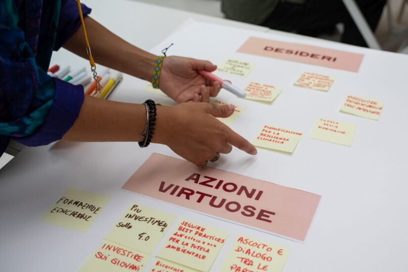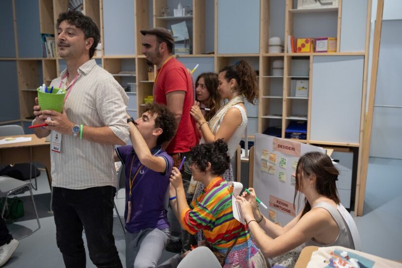 Eugenio Cesaro, fondatore della band torinese Eugenio in Via di Gioia, ha tenuto invece una vera e propria esibizione artistica. Ha cantato “Lettera al prossimo” e poi ha raccontato un aneddoto legato alla canzone: “invece di fare un videoclip abbiamo realizzato una piattaforma online: con un countdown fissato a 36 anni. Noi della band, mettendo da parte un euro al giorno saremmo riusciti infatti a ottenere un bosco tutto nostro in 36 anni. Abbiamo aperto a donazioni anche ad altri: in 10 giorni abbiamo terminato il conto alla rovescia. Siamo andati a Paneveggio, vicino Trento, località colpita da una tempesta nel 2018 e abbiamo ripiantato insieme a Federforeste 2.000 alberi. Niente in confronto a quanto distrutto, ma è servito a non sentirsi impotenti di fronte alla crisi climatica. Il nostro ruolo può essere chiave per il cambiamento che abbiamo in mente”. Come quello di ognuno, nel suo piccolo.