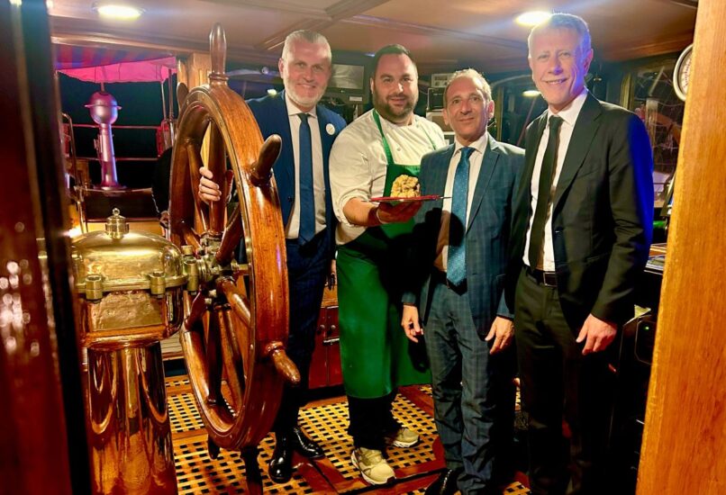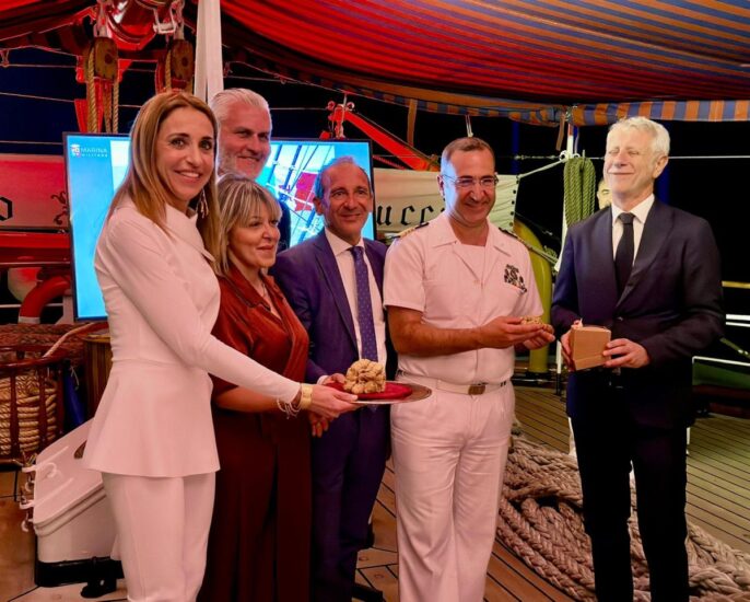 La lunga stagione di raccolta 2024-2025 del tartufo bianco d’Alba, iniziata il 1 ottobre nella Langhe, si conclude dall’altra parte del mondo. O quasi: l’ultimo esemplare del pregiato tubero è volato a Jeddah, in Arabia Saudita, dove, ieri, è stato consegnato al Comandante dell’Amerigo Vespucci, Giuseppe Lai, nella missione della Regione Piemonte nel tour mondiale della “nave più bella del mondo” della Martina Militare Italiana per promuover il made in Italy, a cui hanno preso parte anche l’Ente Turismo Langhe Monferrato Roero, la Fiera Internazionale del Tartufo bianco d’Alba e l’Enoteca Regionale Piemontese Cavour.