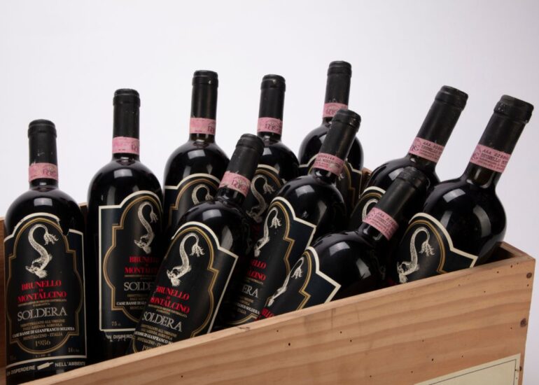 Ma veniamo all’Italia. Accanto ai “top lot” della jeroboam di Barolo Monfortino 2015 di Giacomo Conterno, delle 5 bottiglie di Brunello di Montalcino Case Basse 1986 di Soldera e dei tre lotti da 12 bottiglie di Sassicaia della Tenuta San Guido di diverse annate, c’è anche una verticale di 6 bottiglie sempre di Sassicaia nelle annate 2015, 2016, 2017, 2018, 2019 e 2021 (con base d’asta 1.500 euro); e, ancora, rimanendo a Bolgheri, una mathusalem (6 litri) di Ornellaia 2018 della Tenuta dell’Ornellaia del Gruppo Frescobaldi (con una stima di partenza di 1.800 euro). In un’asta che comunque, solo per citare qualche altro nome, vede tra i lotti anche grandi griffe del vino italiano come Gaja (4 bottiglie di Barbaresco Costa Russi 1983 a 600 euro), Tenuta Greppo Biondi-Santi (6 bottiglie del Brunello di Montalcino 1990 a 480 euro), e icone francesi come Château Latour (2 bottiglie annata 1964 a 500 euro), Château Margaux (1 bottiglia annata 1989 a 800 euro), Château Lafite Rothschild (1 bottiglia annata 2020 a 1.200 euro), Château Mouton Rothschild (2 bottiglie annata 1993 a 500 euro), Domaine René Engel (1 bottiglia di Clos de Vougeot Grand Cru 1996 a 1.000 euro), Domaine Georges Mugneret-Gibourg (1 magnum di Clos de Vougeot Grand Cru 2014 a 1.400 euro), e Domaine du Comte Liger-Belair (1 bottiglia di La Romanée Grand Cru 1996 a 1.900 euro).
