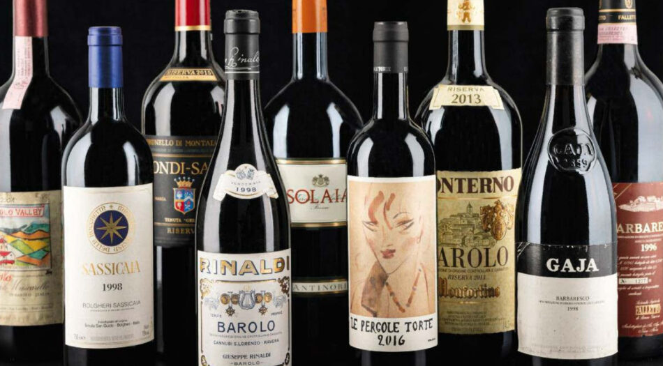E nella quale, tra i molti lotti, si va dai grandi vini del Piemonte - con, tra gli altri, una magnum di Barolo Riserva Monfortino 2000 di Giacomo Conterno (base d’asta 1.000-1.500 euro) e sei bottiglie di Barbaresco 2018 di Gaja (750-1.000 euro) - ai prestigiosi nomi della Toscana - con due magnum di Brunello di Montalcino Riserva 2013 di Biondi-Santi (1.000-1.600 euro) e altre due magnum di Brunello di Montalcino Riserva 2015 di Biondi-Santi (1.100-1.800 euro), oltre a sei bottiglie di Le Pergole Torte 2007 di Montevertine (stima 1.300-1.600 euro) e, di nuovo, il Sassicaia della Tenuta San Guido 2000 in una cassa da sei bottiglie (1.000-1.500 euro) - oltre ai già citati Montepulciano d’Abruzzo di Valentini, e il Veneto, con top lot due bottiglie di Recioto della Valpolicella Riserva 1990 di Quintarelli (600-1.000 euro).
