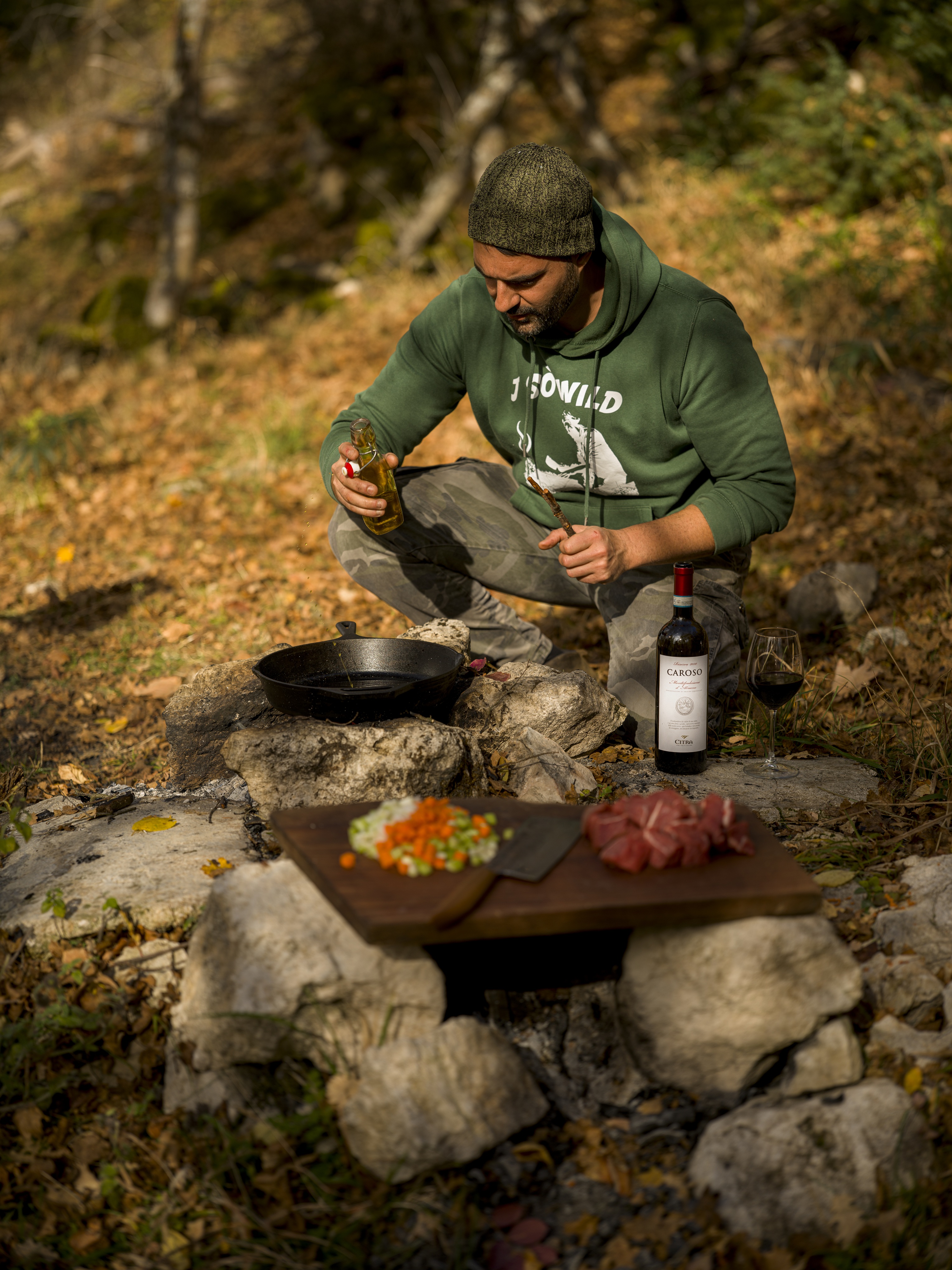 Il vino, quando incontra la cucina, ha dato vita a progetti ed esperimenti sovente interessanti e, soprattutto, capaci di raccontare il territorio come pochi altri. Un ultimo “capitolo”, di questo binomio che abbraccia tradizioni e territorio, arriva dall’Abruzzo grazie a Citra Vini, tra le realtà enologiche più importanti dell’Abruzzo, cooperativa di cooperative (raccoglie infatti otto cantine sociali, tutte locate nella provincia di Chieti e quindi a Pollutri, Rocca San Giovanni, Lanciano, Ortona, Paglieta, Crecchio, Torrevecchia Teatina e Tollo), con 3.000 famiglie di viticoltori che lavorano 6.000 ettari di vigneto, un terzo delle vigne abruzzesi, vini presenti in oltre 50 Paesi del mondo ed una produzione (frutto del lavoro del Wine Team, guidato da Riccardo Cotarella) che raggiunge qualcosa come 30.000.000 di bottiglie in media all’anno. E che ha scelto lo “Chef Wild” Davide Nanni, abruzzese e “star” sui social, come testimonial del suo vino di punta, il Caroso, Montepulciano d’Abruzzo prodotto sin dagli albori dal primo consorzio vinicolo d’Abruzzo, sotto il claim “l’eleganza di saper essere ovunque”. Dall’8 dicembre è partita una campagna social con Davide Nanni a raccontare il vino iconico e tutto il progetto di rebranding dell’azienda e che sarà seguita da un secondo step video con uno spot girato con lo “chef wild” che entrerà anche nelle sale cinematografiche. Nanni (477.000 follower su Instagram), autodidatta, ha scelto di esprimere sé stesso e la sua cucina, partendo dalle sue radici ed è la guida dell’agriturismo “La locanda nido d’Aquila”, azienda agricola e impresa ricettiva a conduzione familiare nel borgo di Castrovalva.
