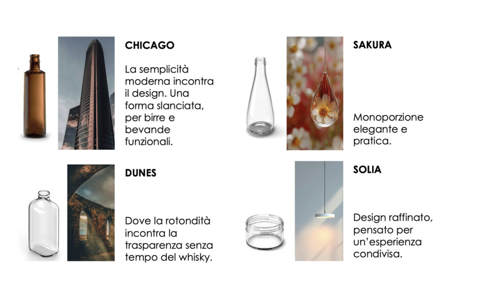 Per rendere tangibili le nuove tendenze, Verallia presenta anche nuovi concept di design industriale: bottiglie dalle linee totemiche pensate per bevande funzionali, vasetti premium per condimenti gourmet e contenitori studiati per esaltare il consumo collettivo.
