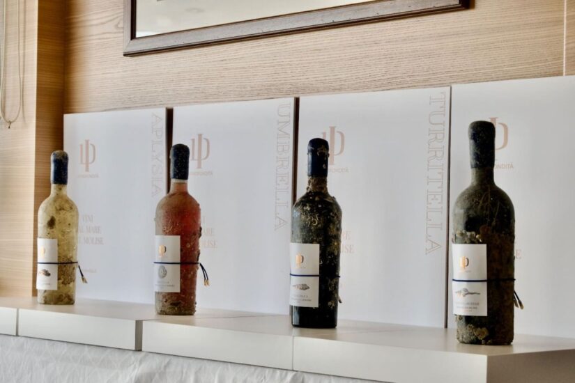 Dall’Aplysia, Falanghina del Molise Doc, all’Umbrella, Tintilia del Molise Rosato Doc, dal Turritella, Tintilia del Molise Rosso Doc, al Cancellariidae Linea Premium, Tintilia del Molise Doc: ecco i primi vini del Molise “underwaterwines”, affinati al buio con temperatura e pressione costanti cullati dalle correnti marine a 38 metri di profondità nel “mare del Molise”, il Mare Adriatico, ad oltre 4 miglia dalla costa al largo di Termoli, dal quale sono riemersi dopo 3 anni, dopo aver acquisito ed amplificato valori e caratteristiche tali da rendere la loro degustazione un’esperienza sensoriale unica ed esclusiva, grazie al progetto della start–up Cobalto e prodotti, in quantità limitata, da “LeProfondità”, ad oggi la più grande cantina subacquea italiana. E che sono stati presentati il 20 ottobre, in una data da ricordare lo storico assaggio nel suggestivo Porto Turistico Marina di San Pietro, da parte di esperti, sommelier, enologi, wine lovers italiani ed internazionali ed autorità.