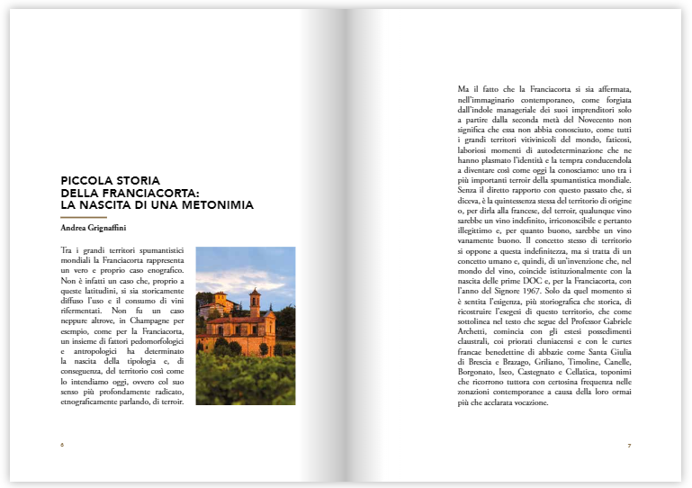 “Collocata in una felice cornice ambientale, dove il terreno e il clima mite si abbinano in modo singolare, la Franciacorta ha espresso nel corso dei secoli una speciale vocazione vitivinicola che, nell’ultimo cinquantennio, ha messo a frutto sapientemente un’esperienza produttiva millenaria - ricorda lo scrittore del libro, il professor Gabriele Archetti - sono poche, infatti, le regioni che nel contesto europeo possono vantare una continuità colturale, specializzata e di qualità, come quella franciacortina. Festeggiare questo traguardo, guardato con ammirazione da tutto il mondo, è per il Consorzio Franciacorta il modo migliore per mettere al centro il lavoro di tante generazioni, la loro capacità di plasmare la terra e l’ingegno a creare un fermentato che, oggi, è sinonimo del luogo stesso in cui lo si produce. Una bella storia dove passato e presente sono già parte del futuro che viene”.