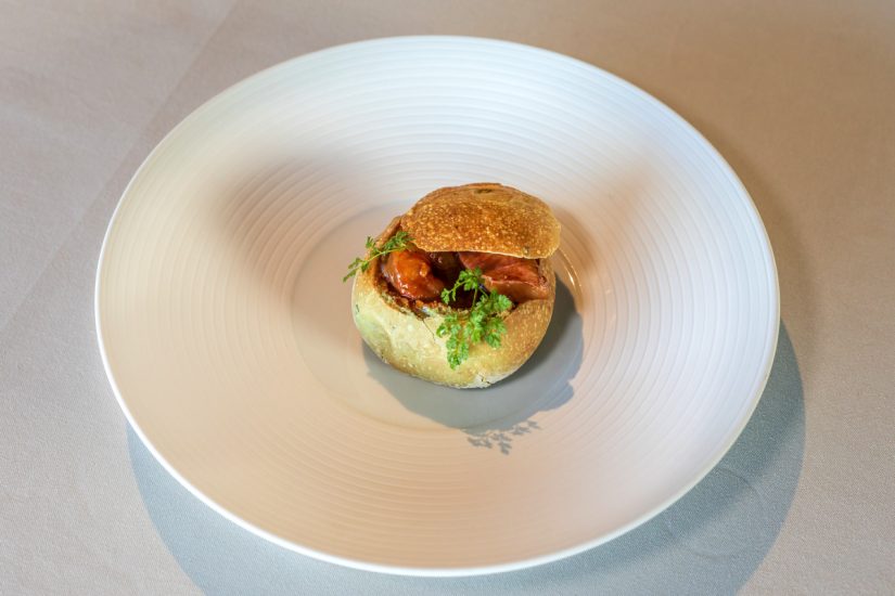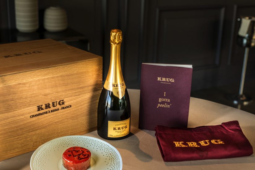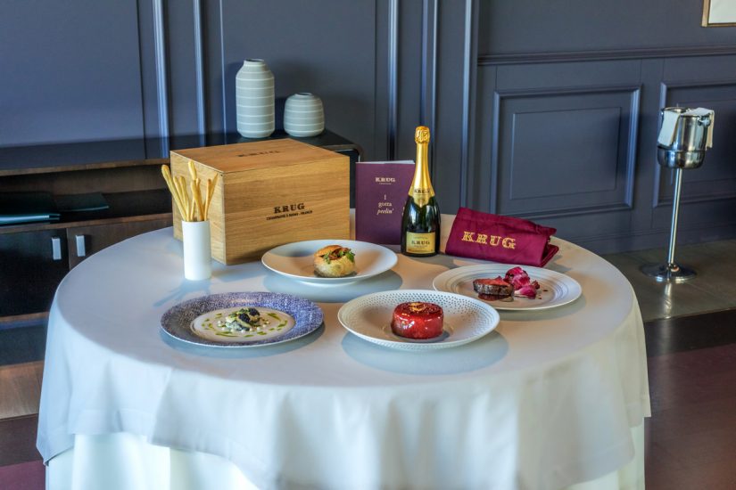 Un menu degustazione raffinato e afrodisiaco studiato per due dallo chef, ambasciatore di Krug, con quattro portate con piatti iconici da gustare a casa in abbinamento alla Grande Cuvée creata dalla vendemmia 2012 e dall’assemblaggio di 198 vini selezionati da 11 annate diverse, che affina per 7 anni nelle cantine della Maison.