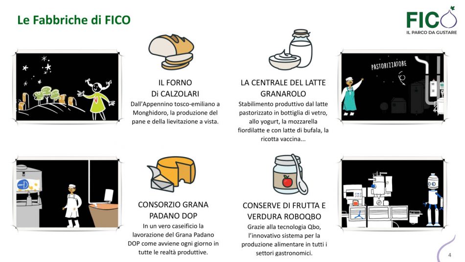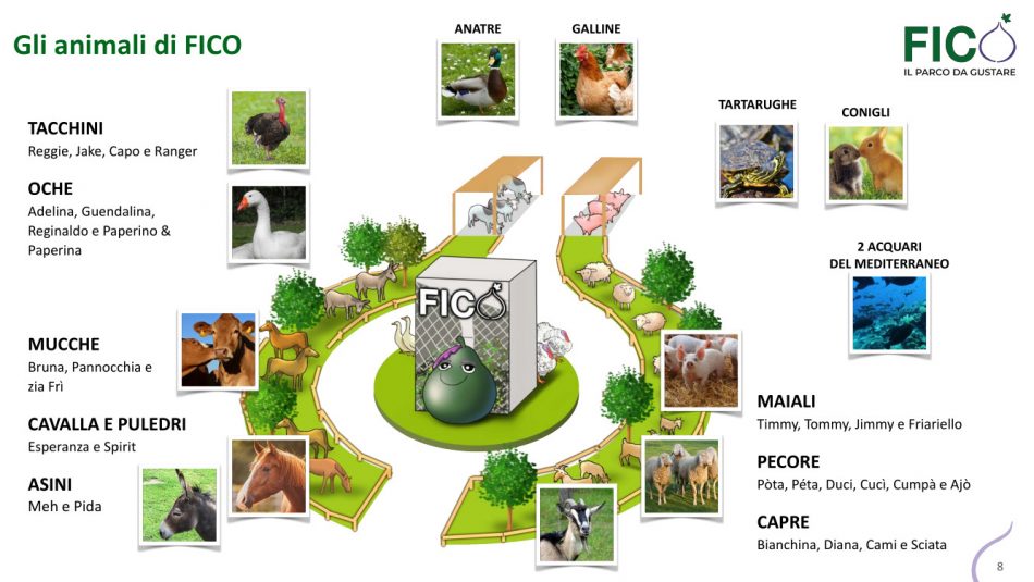 Ancora, resta il tema dell’educazione alla cultura alimentare dei bambini, “che è stata dall’inizio una priorità per Fico, con i suoi 70.000 studenti in visita all’anno, che potranno godere di corsi e laboratori dedicati. Gli Animali della Fattoria sono invece protagonisti già dall’ingresso, ad accogliere i visitatori, mentre quelli da Cortile si trovano lungo il percorso all’interno del parco. Sarà possibile mungere una mucca, strigliare un cavallo, nutrire una capretta o le galline, accarezzare un coniglio, imparando allo stesso tempo come prendersi cura di loro sotto l’occhio vigile del fattore di Fico”.