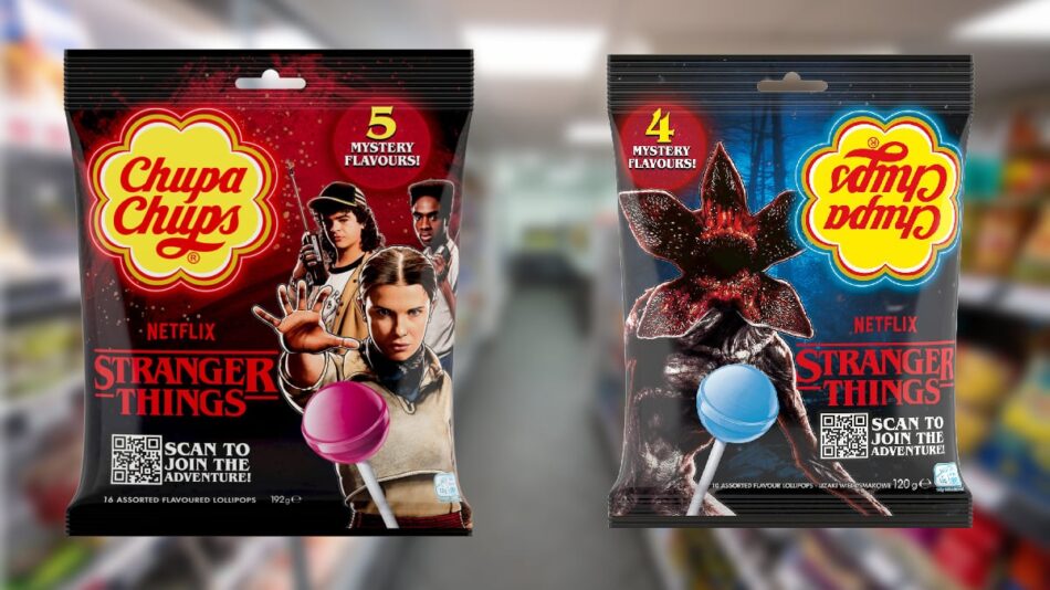 Chupa Chups ha lanciato una collezione esclusiva di lollipop in edizione limitata, con gusti inediti e incarti personalizzati ispirati ai protagonisti della serie. Ognuno racconta una storia e un carattere diverso, come El (Eleven, ovvero Undici), alla vaniglia, Dustin all’ananas, Will alla mela, Lucas alla panna e fragola e Mike alla fragola. Ogni confezione diventa oggetto di collezione per i fan della serie e per tutti gli amanti delle caramelle.