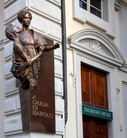 “Il mondo dei vinti ha vinto: era la Langa della Resistenza e della fatica contadina, oggi è la Langa del Barolo”: le parole del fondatore Slow Food Carlin Petrini, langarolo Doc, spiegano perfettamente quella sorta di riverenza che si ha nei confronti delle Langhe, territorio-simbolo del Piemonte e della sua anima contadina, ma nobile, raccontata in alcune delle pagine più belle della letteratura italiana, da Cesare Pavese a Beppe Fenoglio (hanno accompagnato anche WineNews, nel nostro ultimo viaggio nelle Langhe). Un’anima che porta a fare le cose sempre come si deve, prendendo molto seriamente la qualità di ciò che si produce in queste colline Patrimonio Unesco, a partire dal vino, il “re” dei vini italiani, il Barolo nato a metà Ottocento grazie all’intuizione ed ai metodi importati dalla Francia da Juliette Colbert Falletti, l’ultima Marchesa di Barolo, nelle storiche cantine del Castello Falletti (dove soggiornarono personaggi del Risorgimento come l’amico Silvio Pellico, che qui scrisse parte del “Le mie prigioni”). Ma la nobile ed intraprendente Giulia, “signora di Barolo”, divideva la sua vita con Torino, dove, dal seicentesco Palazzo Barolo, sarà la prima a sollevare in Italia il problema delle carceri femminili, nel mentre che si faceva l’Unità d’Italia. Un impegno ricordato da una scultura della Marchesa dell’artista Garbolino Rù, primo monumento dedicato ad una donna della storia torinese (donne alle quali, del resto, come abbiamo raccontato in un video proprio dalle Langhe, è legato, in buona parte, anche il futuro dei territori del vino italiano), voluto dall’Opera Barolo, patrocinato dalla Città di Torino e realizzato con il sostegno della famiglia Abbona, che custodisce la storia nelle cantine Marchesi di Barolo, e svelato, nei giorni scorsi, proprio sulla facciata del Palazzo, dove oggi si trova il Distretto Sociale Barolo, sede di diverse associazioni di volontariato che, quotidianamente, offrono servizi di assistenza e beni di prima necessità a persone e famiglie, molte delle quali povere, fragili e in condizioni vicine alla marginalità sociale.
