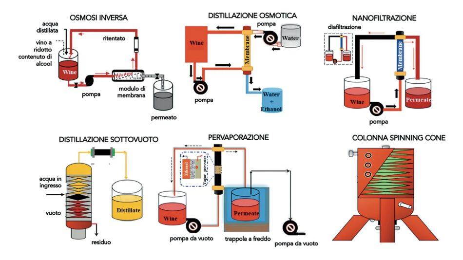 La premessa è che solo dealcolato allo 0,0% è da considerarsi salutare. L’assenza dell’etanolo, del resto, è già di per sé un punto a favore del segmento: meno etanolo significa, infatti, anche meno calorie. Con un bicchiere tradizionale, viene spiegato, si ingeriscono dalle 90 alle 130 calorie, pari a 4 o più zollette di zucchero, mentre un calice di dealcolato, che contiene una quota di zuccheri di uva, ha tra le 20 e le 50 calorie. C’è però un tema: il processo di estrazione dell’alcol dal vino per renderlo effettivamente dealcolato. La dealcolazione (che avviene tendenzialmente attraverso osmosi inversa o distillazione sottovuoto) è una fase che comporta una perdita di fitocomposti benefici (come i polifenoli) e che i produttori, infatti, stanno cercando di minimizzare.
