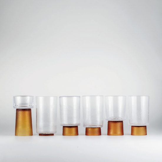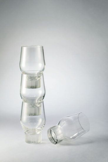 Se “Allatua” di Lorenzo Damiani è un ironico boccale da birra che invita al gesto tipico di un fragoroso “prosit!”, “Tri” di Giulio Iacchetti è un vero e proprio set acqua-vino-digestivo. “Tulipe” di Astrid Luglio è invece un bicchiere da whisky con un “alleato” per l’acqua, mentre “Oste” di Martinelli Venezia è il bicchiere dedicato al vino da osteria. Ma ci sono anche “Access” di mischer’traxler studio, set di bicchieri per l’acqua con capienza diversa in base alla sua disponibilità, e “Amurius” di Luca Nichetto che rende omaggio al “tipetto” veneziano. Con “Bluin” Philippe Nigro risolve il rapporto tra il bicchiere d’acqua e quello da vino con una forma unica, con “Champagne!” Ionna Vautrin ripensa la coppa come una piccola architettura, e con “Filo” Zaven fa lo stesso con la coppetta da cocktail. Calato nella contemporaneità, con nove progetti disegnati per l’occasione da altrettanti progettisti internazionali e realizzati nell’isola della Laguna di Venezia, simbolo della lunga tradizione made in Italy della lavorazione del vetro, il bicchiere, “piccolo grande” oggetto della quotidianità ma anche tema progettuale, è il protagonista di “Forme del bere”, la mostra curata da Elisa Testori a InGalleria (fino al 31 dicembre), l’Art Gallery di Punta Conterie a Murano, che racconta e divulga il mondo del vetro attraverso progetti e oggetti, stili, geografie, tecniche e medium diversi tra loro .