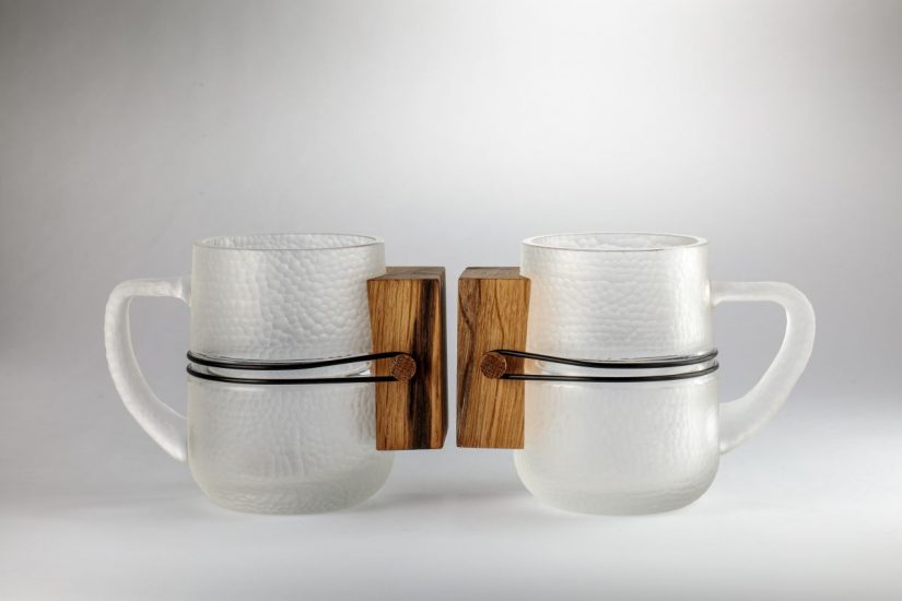 È un boccale da birra che gioca con l’idea, le abitudini e i riti che contraddistinguono da un lato il classico boccale “bavarese” e, dall’altro, i manufatti di vetro muranese, preziosi e da maneggiare con grande cautela. Allatua è un progetto ironico che invita al gesto tipico di un fragoroso “Prosit!” da mettere in atto, però, con un adeguato dispositivo di protezione adatto alla salvaguardia del vetro: un paracolpi su misura, distintamente lagunare, realizzato con del legno di bricola offerto dalle acque e pazientemente lavorato.