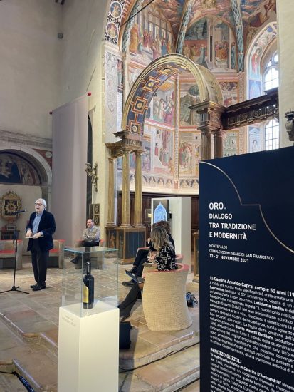 “Max Weber sosteneva che la proprietà obbliga, e la storia di Arnaldo Caprai racconta di un uomo che si è sentito obbligato a restituire, in primis con il museo d’impresa dei tessuti, patrimonio europeo. Ma il sentimento di obbligo in tempi moderni cambia: non è più la proprietà che obbliga, è l’innovazione che obbliga. E qui entra in campo il politologo americano Robert Putnam con la sua teoria sulle virtù civiche: Putnam osserva come il capitale sociale rechi in sé il senso della “virtù civica” ampliandone la portata, mentre non è possibile affermare in contrario, perché una società di individui molto virtuosi ma isolati non necessariamente è una società ricca di capitale sociale. La virtù civica inscritta all’interno di relazioni sociali reciproche trova il suo più compiuto sviluppo. In questo senso il capitale sociale si identifica con quei requisiti culturali, insiti nella struttura delle relazioni, nei valori e nelle norme, che favoriscono un ordine sociale contraddistinto dalla generale cooperazione per il bene pubblico. L’economia non predice l’impegno civico ma è l’impegno civico a predire l’economia e anche meglio dell’economia stessa. E in questa frase si inserisce anche l’importanza dello scheletro contadino che produce mantenimento del territorio, cosa che a sua volta produce bellezza e quindi turismo e cultura, e che è rappresentato da Caprai”. Lo ha detto il sociologo Aldo Bonomi, fondatore di Aaster, nei 50 anni della cantina Arnaldo Caprai, celebrati nei giorni scorsi al Museo Francescano di Montefalco, con una “special edition” di Montefalco Sagrantino Cinquant’Anni Docg 2016 con una preziosa etichetta da collezione in oro zecchino dell’artista di fama internazionale Paolo Canevari, ed attraverso un dialogo con importanti personalità come il critico d’arte Vittorio Sgarbi, Cristiana Perrella, storica dell’arte e curatrice, e il presidente di Confagricoltura Massimiliano Giansanti. Al centro, il territorio, l’impresa, la green society, la cultura, il turismo e l’arte, “cuciti” insieme dalla storia imprenditoriale di Arnaldo e Marco Caprai, imprenditori nei settori tessile ed enologico, che è anche quella del rilancio di un intero territorio, come Montefalco, grazie ad un vino antico, il Sagrantino, simbolo dell’Umbria che rischiava di scomparire, e oggi alla ribalta internazionale, e che diventa un paradigma per il futuro dell’Italia che riparte post-pandemia.