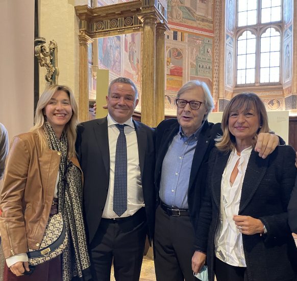 “La grandezza dell’arte italiana, che è incomparabile e incommensurabile, si avvicina molto alla grandezza della nostra produzione vinicola”, ha detto Vittorio Sgarbi in quello che non poteva non essere un excursus sull’arte umbra e italiana, anche contemporanea, come “la bottiglia d’artista per i cinquant’anni di Caprai che è riuscita a dare al vino l’arte e l’oro, con una metafora divina che non ci può che portare a dire che se Dio esiste è perché ha fatto il tartufo e il Sagrantino”. Vino e arte, che ha aggiunto, a WineNews, il critico , insieme alla bellezza del territorio italiano, hanno portato “al riconoscimento a Patrimonio Unesco delle colline vitate del Prosecco, prima di Giotto. E con le Langhe, Roero e Monferrato che, anche grazie alla figura del fondatore Slow Food Carlin Petrini, hanno rappresentato il primo vincolo Unesco ad un bene agricolo simbolo di un mondo contadino che un tempo era in perfetto contrasto con quello della cultura. Oggi vivono insieme, e la loro connessione è stata stabilita e celebrata dall’Unesco, ma anche da personalità come Oscar Farinetti, Brunello Cucinelli e Marco Caprai, che hanno capito che cultura ed agricoltura possono andare insieme. Il legame del Sagrantino con Benozzo Gozzoli, come quello del Prosecco con Giotto, è quello di essere il simbolo di territori fertili sia sul piano della creazione artistica che di prodotti materiali, l’una e gli altri fondamentali per la nostra vita. Nei quali dobbiamo continuare a fare quello che la tradizione indica, conservando e recuperando il nostro patrimonio artistico e culturale, e non deturpandolo”.