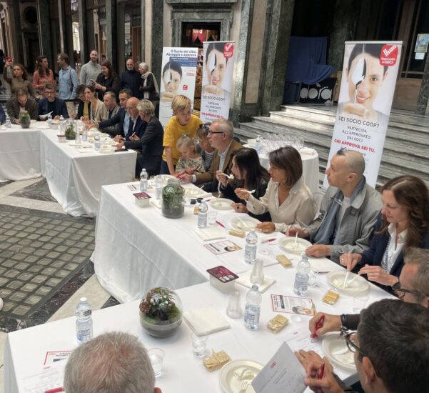 Il cibo che mettiamo nel carrello della spesa e che mangiamo ogni giorno è territorio, natura e processi artigianali. Ma c’è anche un altro aspetto fondamentale: il valore del cibo passa anche dal gusto e dall’opinione delle persone. Per raccontarlo, a Terra Madre Salone del Gusto di Slow Food, che si chiude, oggi, a Torino, Coop - tra i leader della gdo italiana, con un giro d’affari 2023 di 16,4 miliardi di euro, derivante dal wine & food per una quota intorno al 90% del totale, e una crescita imponente del prodotto a marchio che ha raggiunto 4,5 miliardi di euro di fatturato - ha messo attorno ad un tavolo, in una location d’eccezione come la Galleria San Federico nel cuore della prima capitale d’Italia, realizzata nel 1931 con i connotati artistici di modernità e di prestigio, e tanti marmi dai colori fantastici, 19 personaggi famosi del mondo sociale, culturale ed economico italiano - dal trasformista Arturo Brachetti ad Andrea Zalone, spalla storica del “grande” comico e imitatore Maurizio Crozza, dalla dirigente d’azienda Evelina Christillin, oggi presidente del Museo Egizio di Torino, ma a capo anche delle Olimpiadi Invernali 2006, e con incarichi in passato in Fiat, Fifa, Eufa, Enit, a Teo Musso, fondatore Birra Baladin e da sempre appassionato di wine & food, solo per citarne alcuni - per far loro assaggiare i salumi ed i formaggi “Fior Fiore Coop” (dalla Bresaola di Fassone Piemontese della Valtellina alla Burrata di Bufala della Campania, dal Pecorino di Montagna del Gennargentu in Sardegna, ai Prosciutti della Toscana da suini allevati all’aperto e il Gorgonzola), che rimandano ai principi della Chiocciola, con il format “il gusto, assaggia ed approva”.