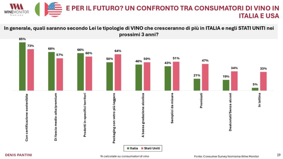 Eppure la preoccupazione delle imprese è alta, come spiega Andrea Conzonato, ad Herita Marzotto Wine Estates, che in Usa ha anche una cantina, la Roco Winery, in Oregon, e importa direttamente i vini attraverso Herita Usa: “siamo molto preoccupati, non si è ancora capito dove sui dazi si andrà a parare, ancora lavoriamo con gli approvvigionamenti pre-dazi. Ci sono tre elementi forti: i dazi stessi che sono applicati sui prodotti Ue che valgono il 50% del mercato, mentre la metà del mercato la fanno i vini americani, e dobbiamo capire se i produttori Usa useranno questo vantaggio per conquistare quote di mercato o migliorare il loro posizionamento di prezzo. È difficile assorbire gli aumenti: distributori e negozianti hanno detto che ogni aumento dei prezzi lo riverseranno sul consumatore, quindi possono assorbirlo solo importatori e produttori, ma anche di questo si vedrà l’effetto nel 2026. La situazione è particolarmente preoccupante, la guardiamo ogni giorno, ma solo il tempo ci dirà qualcosa e probabilmente capiremo qualcosa di più verso il prossimo Vinitaly”.