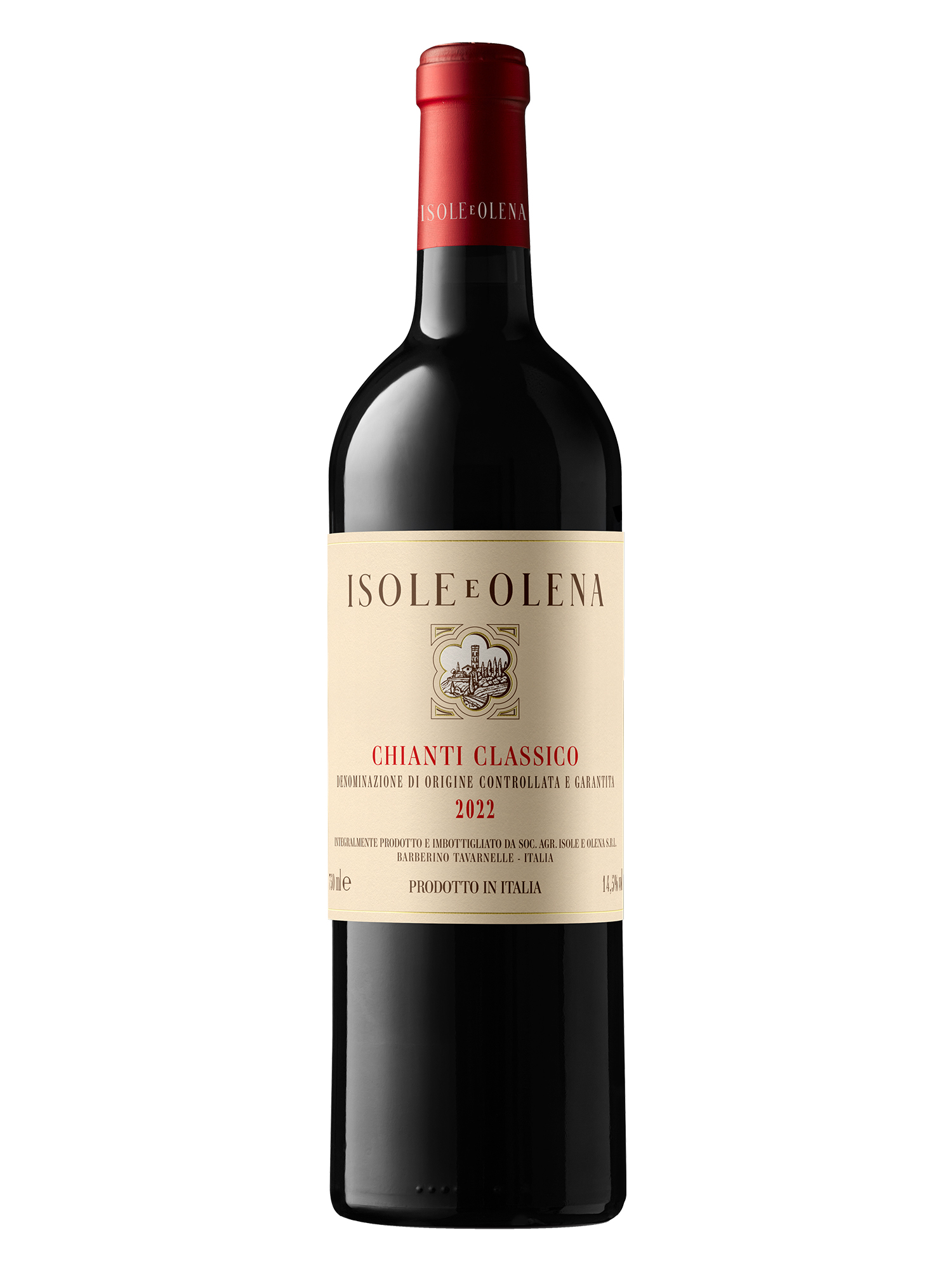 A metà strada tra Firenze e Siena, Isole e Olena si trova nell’UGA di San Donato in Poggio, nella zona occidentale del Chianti Classico. A Isole si trova il cuore dell’attività produttiva: la cantina, la sala di degustazione e la terrazza che domina la Val d’Elsa. Il borgo di Olena ha invece mantenuto il fascino e l’autentica bellezza di un tempo. L’azienda è stata fondata nel 1956 dalla famiglia De Marchi, che riunì in un’unica tenuta i due borghi prima separati; oggi appartiene al gruppo francese EPI. L’approccio vitivinicolo di Isole e Olena è da sempre basato sulla profonda conoscenza dei terreni, seguendo pratiche finalizzate al rispetto della natura e alla sua salvaguardia. Negli ultimi 20 anni è stata avviata una selezione di Sangiovese per l’incremento di vigneti, capaci di affrontare al meglio l’emergenza climatica. Il Chianti Classico è il vino più radicato nella storia di Isole e Olena: prodotto per la prima volta nel 1969, è stato fin da subito uno dei protagonisti della moderna rinascita della qualità del Chianti Classico. Fermentato in acciaio per mantenerne purezza e freschezza, affina in botti grandi per 12 mesi e poi sei mesi in bottiglia. Nel bicchiere presenta un colore rosso rubino brillante. Al naso, intensi aromi di ribes rosso e ciliegia, con un fondo di sottobosco, anticipano un palato che è succoso e rotondo, scorrevole e con un lungo finale. Si abbina benissimo a carni alla griglia.