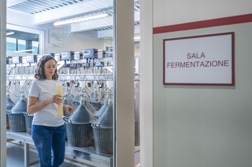 L’area dedicata alla microvinificazione riproduce, in piccola scala, il processo produttivo del vino, con uva da vigneti sperimentali dell’areale Docg, oggetto di ricerca. Nell’area destinata alla cantina sperimentale, invece, è allestita una linea di sboccatura e confezionamento, dove le bottiglie entrano “in punta” e, dopo il remouage, seguono l’intero ciclo dalla rimozione del deposito alla vestizione finale. Linea che sarà utilizzata a scopo didattico dagli studenti di Accademia Symposium per apprendere la configurazione, il funzionamento e i punti critici in fase di finitura del lungo ciclo di produzione del Franciacorta, con le cantine partner che forniranno il vino per effettuare le ore di laboratorio, permettendo di replicare i medesimi processi svolti nelle cantine produttive.