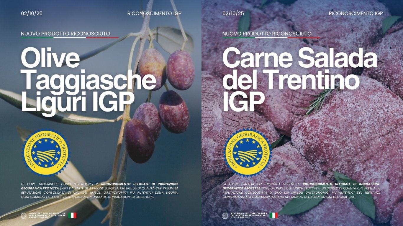 “Le Olive Taggiasche liguri e la Carne Salada del Trentino ottengono il riconoscimento Igp, l’Italia dimostra ancora una volta che qualità, la tradizione e il legame con il territorio sono la vera forza competitiva della nostra agricoltura”, così il Ministro dell’Agricoltura, Francesco Lollobrigida, saluta l’iscrizione delle due nuove eccellenze nel registro delle Igp. “Il mio impegno e quello del Masaf - prosegue Lollobrigida- è garantire a queste eccellenze nuove opportunità di crescita e affermazione sui mercati e il sistema delle indicazioni geografiche è la via da seguire per proteggere i nostri prodotti e distribuire valore a tutti gli operatori”. Con le registrazioni delle “Olive taggiasche liguri”e la “Carne salada del Trentino” nel registro delle Indicazioni geografiche protette, l’Italia raggiunge 895 riconoscimenti Ig, confermandosi leader in Europa. Il sistema delle indicazioni geografiche vale 20,337 miliardi di euro alla produzione, e porta all’estero prodotti per 11,6 miliardi di euro.