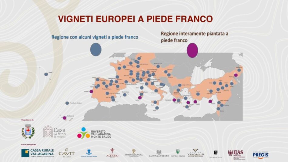 La fillossera, arrivata da Oltreoceano in Europa nel 1863, è stata responsabile della distruzione della viticoltura del Vecchio Continente, che si è “ricostituita” con l’uso di portinnesti di viti americane resistenti al parassita. Le viti a piede franco, in vigneti anche più che centenari, hanno resistito alla fillossera potendo mantenere indenni le proprie radici di vite europea (Vitis vinifera) grazie a terreni sabbiosi, vulcanici e ad alte quote che caratterizzano le aree dove insistono tuttora che impediscono all’insetto di sopravvivere o di completare il suo ciclo vitale. In Italia è la Sardegna ad avere la superficie maggiore di vigneti “a piede franco” con oltre 430 ettari, mentre gli ettari totali italiani non sono noti, anche perché molti di questi vigneti non sono censiti, ma sono presenti laddove le condizioni sono adatte e la viticoltura “moderna” non li ha sostituiti.