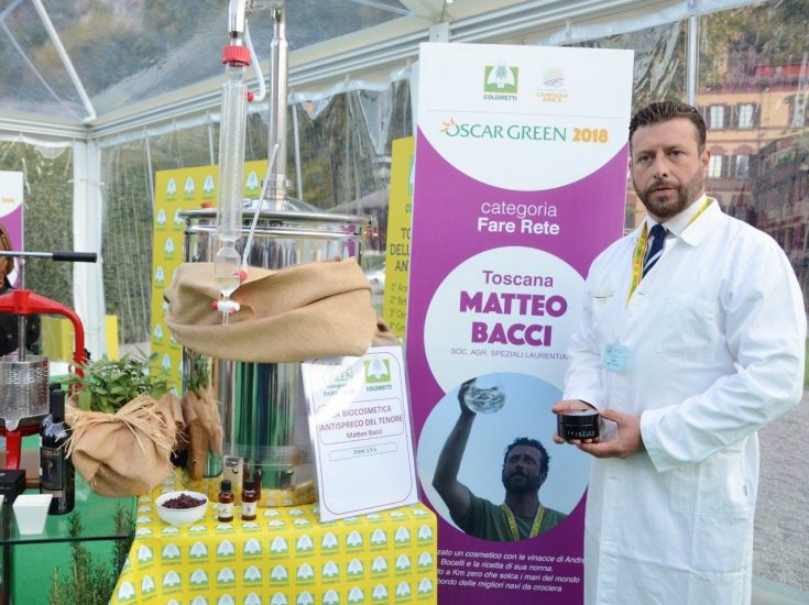 Una testimonianza dello spirito imprenditoriale dei giovani agricoltori che con coraggio e passione sfidano la crisi e riescono a fare business. Puntare sul recupero degli scarti aziendali oggi, sottolinea la Coldiretti, è importantissimo per combattere gli sprechi per questo nella categoria “Fare rete” il premio è stato assegnato a Matteo Bacci della Toscana, che ha saputo trasformare un rifiuto aziendale da smaltire a caro prezzo in opportunità. Ed è così che in collaborazione con il grande tenore Andrea Bocelli, che produce vino e ha scarti di vinacce da “ripensare”, Matteo Bacci con il suo passato di famiglia di farmacisti mette a disposizione l’acqua aromatica da rigenerare per creare la prima linea di cosmetica anti spreco a chilometro zero.