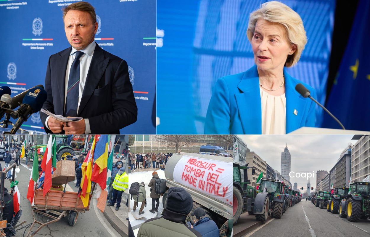 Ma se c’è chi esulta, c’è anche chi guarda con preoccupazione all’accordo, soprattutto sul fronte agricolo e dei produttori di materie prime. E se in tutta Europa le frange più accese della rappresentanza agricola hanno riportato i trattori in strada (ieri soprattutto in Francia, come abbiamo raccontato qui), anche in centro a Milano, in queste ore, con una protesta che sta montando un po’ ovunque, con manifestanti che bloccano il traffico e che sversano latte e altri prodotti nelle strade, sotto varie sigle, da Coapi a Riscatto Agricolo, a Cra-Agricoltori Traditi, tra gli altri, anche le organizzazioni agricole, già ieri, hanno espresso perplessità e annunciato di tenere la guardia altra, soprattutto sull’applicazione delle varie clausole di reciprocità (come abbiamo riportato qui).