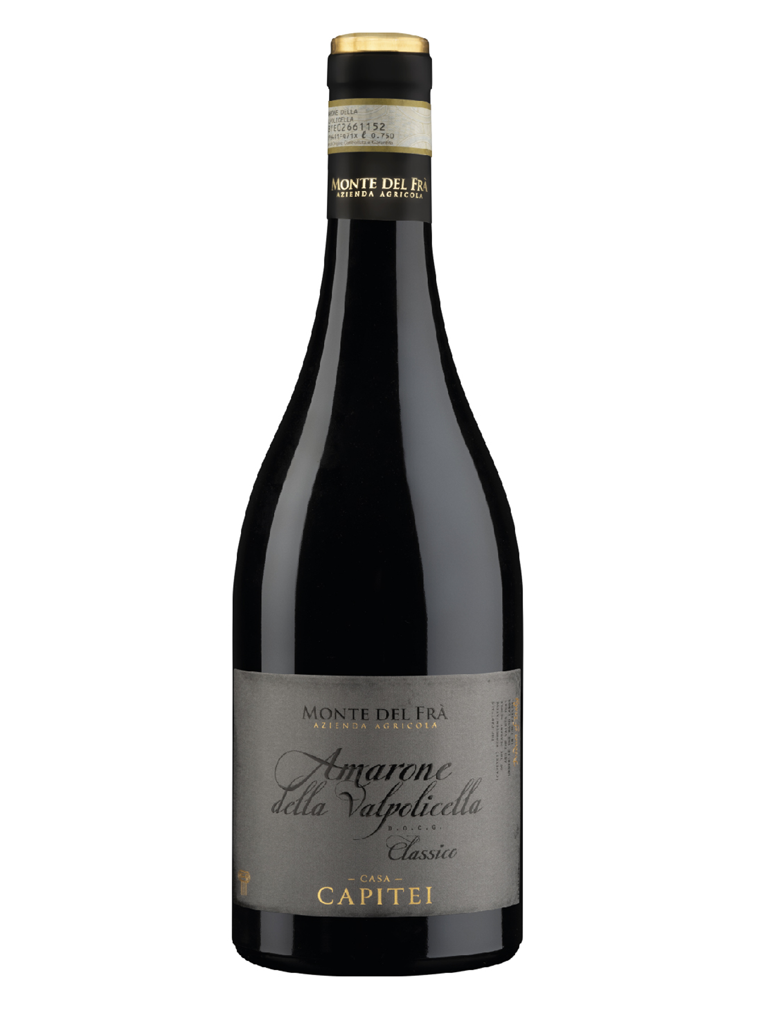 Monte del Frà è l’azienda della famiglia Bonomo, che comincia la sua avventura enoica nel 1958. Oggi rappresenta una realtà consolidata dello scenario enoico veronese, soprattutto nel territorio del Lago di Garda, dove sorge il suo nucleo produttivo principale, tra le colline di Custoza e la Lugana. Ma la terza generazione dei Bonomo, specialmente nel recente passato, ha intrapreso un percorso che l’ha vista “sbarcare” anche in Valpolicella, dove sono attive la Tenuta Lena di Mezzo e la struttura di San Pietro in Cariano. Ecco allora ad affiancare alla sua produzione storica - saldamente ancorata alle denominazioni Bardolino, Bardolino Chiaretto, Lugana, Soave Classico, e Custoza - un crescente fermento attorno a quella dei Valpolicella Classico e Superiore, Ripasso, Amarone e Recioto. E nel panorama vitivinicolo veneto, l’azienda con sede a Sommacampagna è ormai diventata un’impresa certamente significativa, forte di 137 ettari a vigneto di proprietà, per una produzione di 1.200.000 di bottiglie, declinate con uno stile dalla fisionomia definita, dove, oltre ad una buona sintonia con il territorio d’origine, non mancano godibilità e piacevolezza. L’Amarone Casa Capitei 2019 profuma di frutti rossi in confettura, liquirizia, mirtilli, sottobosco, spezie e china; ricco, polposo e avvolgente il sorso, dai tannini dolci e fitti e dal finale persistente, dai ritorni fruttati e dalla nota di congedo pepata.