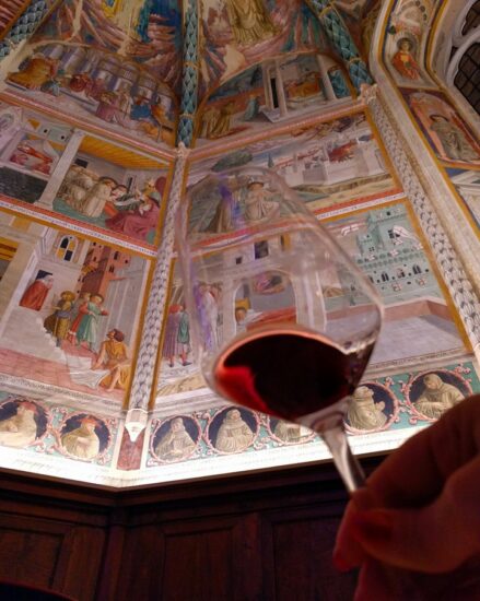 Nato come vino da Messa nel Medioevo, grazie ai frati francescani, il Sagrantino è uno dei vini rossi più antichi d’Italia: dopo aver conquistato la Docg nel 1992, è diventato uno dei top wines più richiesti e apprezzati in tutto il mondo, anche grazie agli investimenti delle più importanti cantine del territorio, a partire dalla Arnaldo Caprai che ne ha salvato le antiche barbatelle dal Convento di Santa Chiara a Montefalco. Ed è anche per merito del Sagrantino che la cittadina di Montefalco, ricchissima di opere d’arte - basti pensare ai preziosi affreschi di Benozzo Gozzoli, risalenti al 1452 - è stata “lanciata” nel circuito del turismo internazionale. Da oggi il grande vino umbro è protagonista assoluto del Museo del Sagrantino, appena inaugurato a Montefalco, nel Complesso Museale San Francesco: un progetto basato su un coinvolgente percorso immersivo e sensoriale, che parte dalle antiche cantine francescane e prosegue con la storica tradizione vitivinicola tra vigneti e piccoli borghi del territorio, già magnificamente raccontata da Benozzo Gozzoli nei suoi affreschi, che illuminano proprio l’abside della chiesa di San Francesco, oggi un raro gioiello di ciclo pittorico rinascimentale e vero documento storico sul paesaggio agrario e la città di Montefalco. Nel percorso del museo sono esposti materiali del XVIII e XIX secolo legati alla lavorazione delle uve e alla produzione in cantina, con documenti, fotografie e video illustrativi: il Museo del Sagrantino diventa così la porta di accesso alla scoperta del territorio in cui viene prodotto il Sagrantino Docg (ovvero Montefalco e parte dei Comuni di Bevagna, Castel Ritaldi, Giano dell’Umbria e Gualdo Cattaneo).