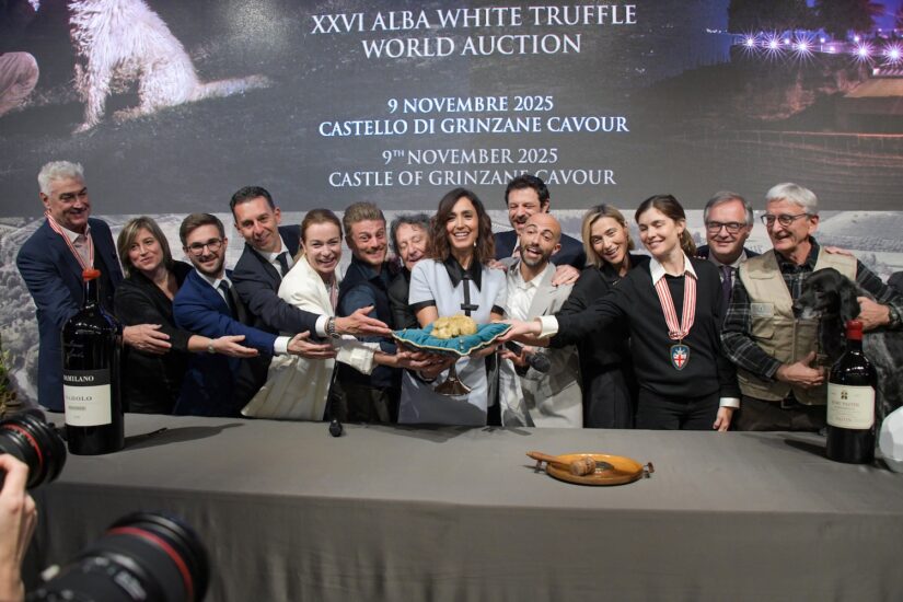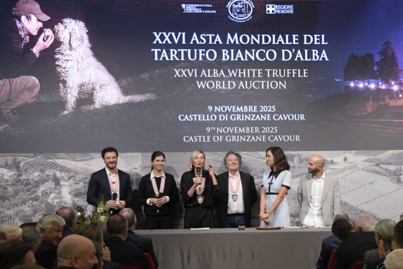 L’asta celebra, come da tradizione, il pregiato diamante della terra, in abbinamento ai grandi formati di Barolo Docg, Barbaresco Docg e dei vini dei produttori aderenti al Consorzio di Tutela Barolo Barbaresco Alba Langhe e Dogliani, ambasciatori nel mondo delle iconiche colline di Langhe, Roero e Monferrato. Apice dell’evento, il lotto finale composto da una rarissima trifola tripla da 1.009 grammi, cavata in terra di Roero, presentata dal presidente dell’Unione delle Associazioni Trifulau Piemontesi, Mario Aprile, in compagnia della sua cagnolina Lady. Il lotto è stato aggiudicato a Hong Kong per la ragguardevole cifra di 110.000 euro, 1 milione di dollari hongkonghesi. In sala a Grinzane Cavour, il martelletto è calato su altri 3 esemplari di Tartufo Bianco d’Alba da 249, 331 e 402 grammi, andati all’imprenditrice cuneese Alessia Bertolotto, direttore generale di Marcopolo Environmental Group, all’imprenditore cheraschese Mariano Costamagna e a un turista cinese, l’insegnante Roy Yu. Con i 22.000 euro raccolti per l’ultimo lotto si chiude anche, con un nuovo record, l’edizione n. 5 di “Barolo en Primeur”, che raggiunge la cifra complessiva di 1.130.300 euro destinati a progetti sociali e culturali in Italia e nel mondo. L’ultimo lotto di Barolo Gustava è stato aggiudicato con un’offerta arrivata da Hong Kong, con una donazione a sostegno della Mother’s Choice Foundation, organizzazione che dal 1987 sostiene bambini orfani e giovani madri in difficoltà. Con questo risultato, l’asta solidale, promossa da Fondazione Crc Donare Ets e Fondazione Cassa di Risparmio di Cuneo, in collaborazione con il Consorzio di Tutela Barolo Barbaresco Alba Langhe e Dogliani, in 5 edizioni ha raccolto oltre 4,5 milioni di euro, a beneficio di quasi 100 progetti sociali e culturali in Italia e nel mondo.