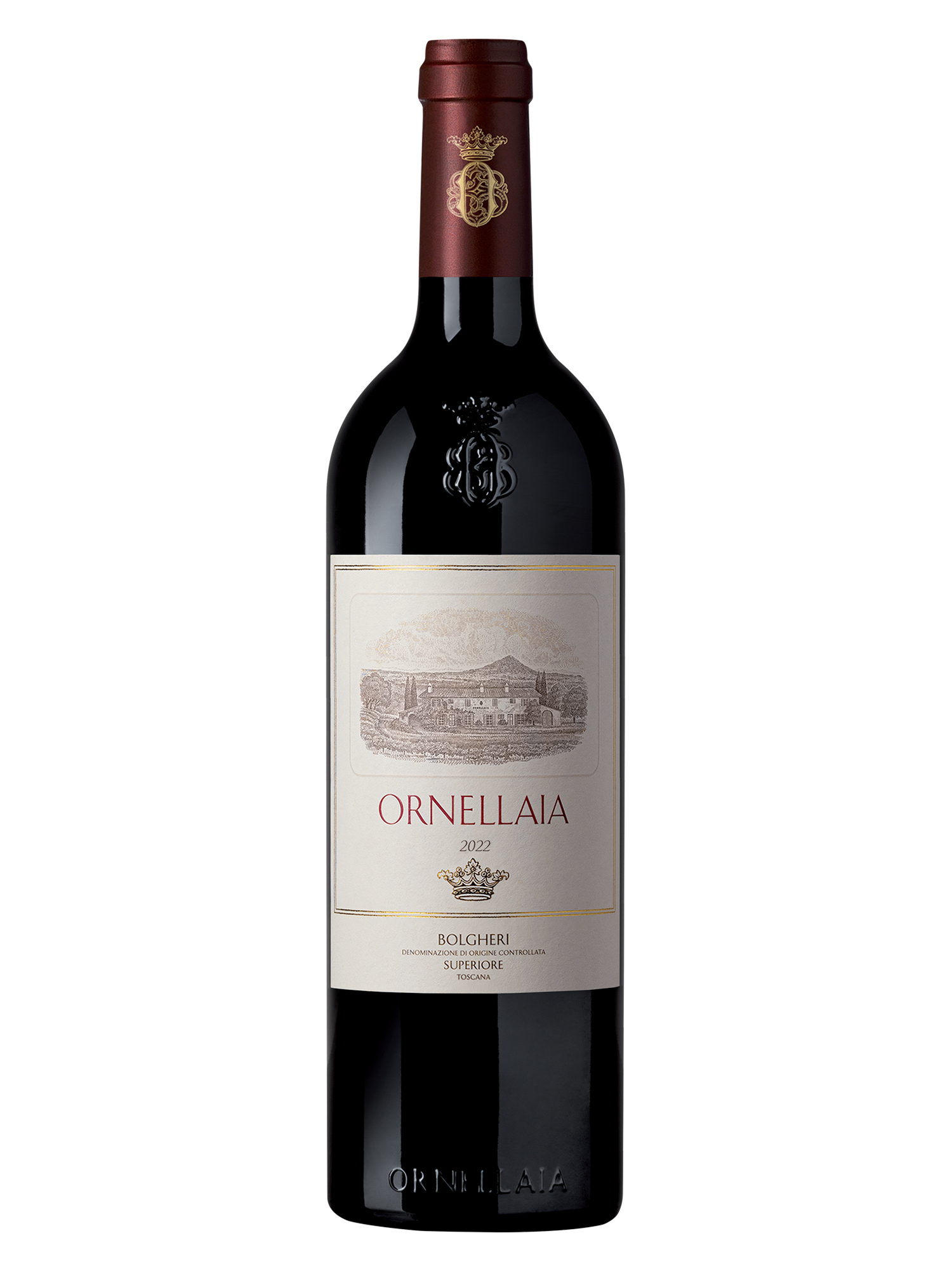 Il Bolgheri Superiore Ornellaia 2022 possiede bagaglio aromatico che rimanda ai frutti neri, alle erbe aromatiche e al sottobosco, con tocchi di grafite, spezie e cenni tostati. Il sorso è intenso, ampio e muscolare, dai tannini fitti e ben coperti da un frutto maturo e polposo, terminando in un finale persistente, lungo e balsamico. L’Ornellaia - tenuta di 134 ettari a vigneto, posti fra i 50 e i 120 metri di altezza su suoli vari, che formano un mosaico di parcelle di origine marina, alluvionale o vulcanica - è dal 2002 la dependance dei Frescobaldi in terra bolgherese, ed è tra le cantine simbolo di questo areale, la cui fama è difficile circoscrivere soltanto a Bolgheri, alla Toscana o all’Italia.