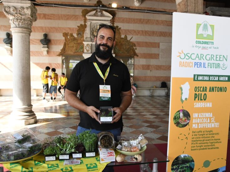 Ortaggi in miniatura per arricchire i piatti degli chef stellati, verdure coltivate grazie al supporto dei pesci, gioielli preziosi fatti con cipolle, finocchi e fiori, e anche cosmetici green al burro di iris o glamping ispirati alle api. Sono alcune delle innovazioni presentate oggi al Villaggio Coldiretti di Udine in occasione degli Oscar Green, il salone della creatività made in Italy “Radici per il futuro”. Una vetrina, con premiazione, per i giovani imprenditori che si sono contraddistinti nell’ambito dell’innovazione in agricoltura, del sociale e della sostenibilità. Tra i premiati Amadou Baldeh, 27 anni, originario del Gambia, insignito del riconoscimento Campagna Amica per la sua storia esempio di integrazione, talento e determinazione: in Valle d’Aosta coltiva mirtilli, noci, nocciole, patate e genepy che vende nei mercati locali proprio di Campagna Amica. Oppure il progetto “Oltre le sbarre con l’aeroponica” nato da un’idea di Luigi d’Alessio, in cui le piante vengono coltivate in aria usando la tecnica dell’aeroponica, dove le essenze crescono senza terra e con le radici sospese, assieme all’associazione di promozione sociale “Oltre il Giardino”: i detenuti coltivano piante fitoterapiche, che verranno poi commercializzate attraverso i mercati di Coldiretti. Premiata anche la storia di agricoltura eroica dei tre fratelli Falco (Elia, Emily e Dennis), che hanno deciso di tornare alle origini e aprire un caseificio aziendale nelle campagne del Cuneese, in Piemonte, dove produrre il Castelmagno Dop, e anche l’idea di Raffaella Tavone, in Molise, che ha realizzato un innovativo pollaio hi-tech, dove i sensori di rilevamento della temperatura dell’acqua permettono il lavaggio automatico degli abbeveratoi degli animali per evitare il formarsi di batteri, mentre un sistema informatico regola la temperatura interna e la quantità di cibo e acqua di cui hanno bisogno gli animali. È ispirato alle api invece il glamping sostenibile creato da Soraya Zorzettig, nelle campagne di Udine, che ai suoi ospiti offre sistemazioni in chalet a forma di alveare. Ogni casetta è realizzata in legno di larice e, grazie alla presenza di pannelli fotovoltaici sul tetto, è energeticamente indipendente. In Sardegna la Società Agricola Pi’n’Pi è diventata un simbolo di economia circolare: Oscar e Andrea raccolgono i fondi di caffè dai bar del territorio e li utilizzano come substrato per la coltivazione di funghi, senza l’uso di pesticidi, plastiche o altre aggiunte. E poi il riconoscimento a Davide Codazzi, 29 anni, che su Instagram e TikTok racconta la vita d’alpeggio a 1.500 metri in Val Gerola, terra del Bitto Dop. Con l’hashtag #modavegia e oltre 250.000 follower, mostra la mungitura all’alba e la produzione dei suoi formaggi e durante l’estate vive in quota con 70 bovini e ovicaprini. Ma in generale sono stati tantissimi i progetti innovativi realizzati e raccontati dai giovani agricoltori durante la kermesse: dal gin d’ulivo prodotto con botaniche locali ai cosmetici green preparati grazie alla prima distilleria italiana per estrarre il burro di giaggiolo, il fiore dell’iris, alle iniziative di reinserimento lavorativo di soggetti con disabilità psichica (succede nel Bresciano con Social Bee Energy) coinvolti in un grande progetto di riqualificazione di un terreno abbandonato che abbraccia un vigneto Franciacorta Docg, un apiario tecnologico e un bosco didattico. E poi l’agricoltrice-orafa Adriana Tavella che nelle campagne di Crotone coltiva fiori per poi trasformarli, con l’aiuto di resina e altri materiali, in gioielli o creare - in collaborazione con Lady Tropea - una linea di monili con la cipolla rossa di Tropea Igp essiccata, dagli anelli alle collane. L’innovazione di processo è al centro dell’idea di Sebastiano Di Martino, che a Caltanissetta ha messo in piedi una produzione di micro-ortaggi per la ristorazione di alta gamma. In Trentino Nicola Chiogna ha realizzato la prima mela in granuli che, disciolta in acqua, può diventare una purea o una bevanda rinfrescante, oltre ad essere usata nella preparazione dei dolci. La sostenibilità è la cifra vincente dell’impianto di Moretto Farm, a Treviso, che ha puntato sull’acquaponica, una pratica agricola che unisce l’idroponica e l’acquacoltura, come fonte di elementi nutritivi per la produzione di verdure, erbe aromatiche e frutta. Il pesce fornisce il nutrimento per le piante e le piante depurano l’acqua per i pesci, garantendo un elevato risparmio idrico e un utilizzo minimo di sostanze nutritive dall’esterno, totalmente indipendente dal punto di vista elettrico, termico e idrico. La cerimonia di consegna dei premi si è aperta con il flash mob dei giovani della Coldiretti per lanciare un messaggio di pace rispetto ai rischi di escalation in Medio Oriente, dove è divampato il conflitto tra Israele e Iran con l’attacco ai siti iraniani: “invece di investire in armamenti, sosteniamo chi valorizza l’ambiente e i territori, creando le condizioni per una vera pace fondata sulla disponibilità di cibo da offrire anche a chi ancora oggi soffre la fame - ha detto il presidente della Coldiretti, Ettore Prandini - l’Italia sta dimostrando una forte capacità di implementare strategie vincenti, esportando sempre di più le nostre eccellenze agroalimentari nel mondo. Ma è il momento di fare una scelta chiara: favorire chi opera per la vita, non per la guerra”.