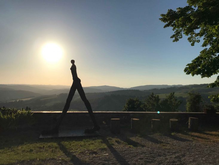 Acclamata artista francese, ha esposto in musei, luoghi pubblici e collezioni private di tutto il mondo. In Italia, è presente, oltre che a Panzano, a Villa Lario, sul Lago di Como con una sua mostra monografica mentre si è appena conclusa a Venezia, a Palazzo Morosini, sede storica di Generali Italia, l’esposizione “Intime Venice”, realizzata alla Biennale Internazionale d’Arte di Venezia 2019. Nathalie Decoster ha creato un suo proprio linguaggio di segni, le sue sono sculture iconiche che raffigurano un uomo stilizzato nell’atto di camminare, un “messaggero” come lo definisce l’artista, spesso racchiuso in una forma geometrica come un cerchio, un quadrato o un cubo. Opere che riflettono sulla condizione umana, la sua fragilità, lo scorrere del tempo, il recondito desiderio di raggiungere la serenità. Le loro forme si sposano sia con l’ideale di “bellezza”, caro al Rinascimento italiano, sia con la “bellezza” del paesaggio toscano dentro il quale si inseriscono con estrema semplicità, proprio per l’intima connessione della dimensione dell’artista con la natura.