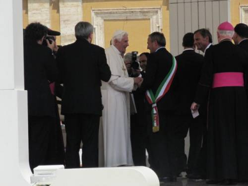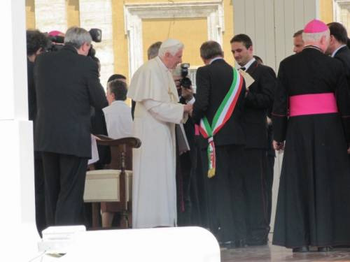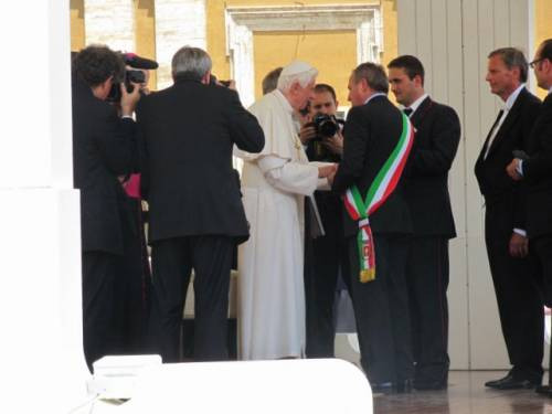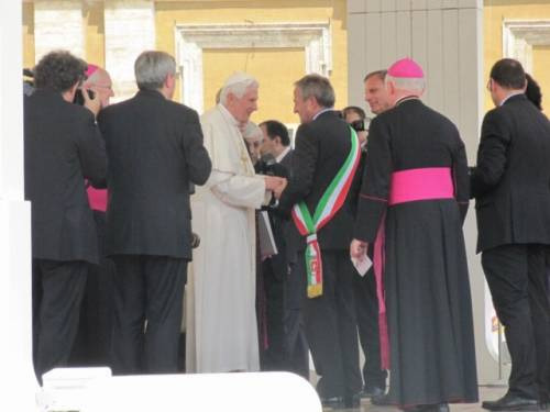 “Lo berremo con letizia, trasmetta la mia benedizione a tutte le comunità del vino italiane. Il vino è gioia e fratellanza, ed è il simbolo del sangue di Cristo”: è questa la testimonianza del presidente delle Città del Vino Giampaolo Pioli che, ieri in Piazza San Pietro a Roma, ha consegnato personalmente a Papa Benedetto XVI la magnum de “Il Taglio per l’Unità”, la cuvée ideata dal winemaker Roberto Cipresso per i 150 anni dell’Unità d’Italia, con i vitigni autoctoni più rappresentativi provenienti da ognuna delle 20 regioni della Penisola, dalla Val d’Aosta alla Sicilia. Ad accompagnarlo in Piazza San Pietro, 150 sindaci dei Comuni a più alta vocazione vitivinicola, in rappresentanza di tutta l’Italia del Vino.