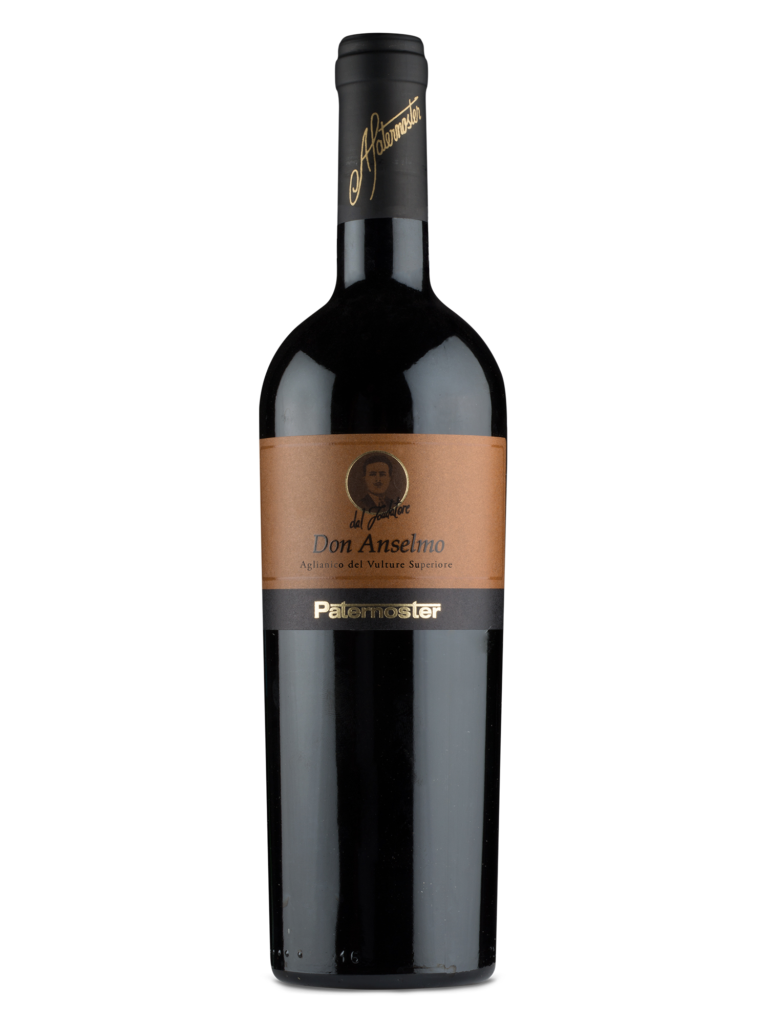 Questo Aglianico del Vulture Superiore - storicamente emblema della denominazione lucana - nasce come omaggio di Pino Paternoster a suo padre Anselmo, fondatore dell’azienda, uomo coraggioso e visionario che cominciò a produrre vino su un piccolo lembo di terra ed ebbe l’intelligenza nel 1925 di scrivere sull’etichetta il nome dell’azienda e la provenienza. Il Don Anselmo, prima vendemmia 1985, preclude a una svolta nella produzione aziendale. Pino, infatti, tra gli anni Settanta e Novanta, forte degli studi a Conegliano, era arrivato a produrre 50-60.000 bottiglie di spumante a base di Moscato e Malvasia. Don Anselmo segna allora l’inizio della valorizzazione del vitigno lucano, proseguita con Vito Paternoster, che l’ha portato alla notorietà, e corroborata dall’ingresso della Famiglia Tommasi, che nel 2016 ha acquisito l’azienda di Barile (Potenza), e da Fabio Mecca, quarta generazione nell’azienda Paternoster, giunta al traguardo dei cento anni. Don Anselmo nasce da viti di 50 anni a 600 metri slm, rese bassissime (35-40 q ad ettaro) e suolo vulcanico foriero di struttura, eleganza e longevità. Prima annata a quattro mani di Fabio Mecca e Giancarlo Tommasi, nella 2016 - bel rosso rubino brillante e profondo - al naso, ricco, prevale la frutta sotto spirito, sulle note di cuoio e spezie scure. La bocca è ampia, strutturata, equilibrata ed elegante. Note ematiche accompagnano il finale lunghissimo.