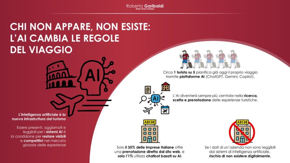 Per accompagnare questo cambiamento, le destinazioni italiane sono chiamate a rafforzare quattro leve chiave: stewardship territoriale, ovvero passare dalla sola promozione alla cura condivisa del territorio e delle sue comunità; misurazione degli impatti, per valutare non solo i flussi, ma gli effetti sociali, culturali e ambientali del turismo; digitalizzazione e Intelligenza Artificiale, strumenti indispensabili per migliorare visibilità, personalizzazione e gestione delle presenze; professionalizzazione delle competenze, soprattutto nelle realtà agricole, artigiane e nelle piccole imprese, che rappresentano l’ossatura del settore.