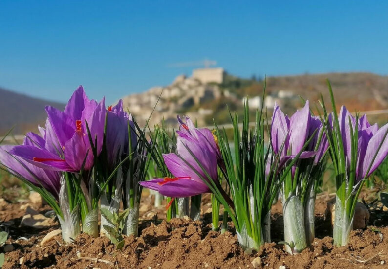 Lo zafferano arrivò in Italia per la prima volta a Navelli, a L’Aquila, nel XII secolo, introdotto, secondo le ricostruzioni, da un monaco domenicano che in Spagna si innamorò della spezia - che si ottiene dagli stigmi del fiore del Crocus - e che portò nel suo territorio alcuni bulbi della pianta. L’altopiano aquilano, sui 700 e 1.000 metri di altitudine, si rivelò l’habitat ideale per la coltivazione, grazie al clima secco e ventilato ed ai terreni calcarei, e tra il Cinquecento ed il Seicento lo zafferano divenne una delle principali risorse economiche del territorio - molto richiesto dai commercianti veneziani, milanesi e fiorentini - fino a che la peste, le guerre e l’accrescersi delle gabelle imposte dai monarchi spagnoli fecero crollare la produzione. Tra alti e bassi, la coltivazione si azzerò quasi completamente, fino all’intuizione, nel dopoguerra, di Silvio Salvatore Sarra, “padre nobile” dello zafferano, che riunì alcuni produttori locali in una cooperativa, riscoprendo tecniche tradizionali di coltivazione e lavorazione manuale. E nel 2005 lo “Zafferano dell’Aquila” ha ottenuto la Denominazione di Origine Protetta (Dop), riconoscendo ufficialmente il legame con l’altopiano di Navelli e l’eccellenza del prodotto, che, oggi, rappresenta non solo una spezia di altissimo pregio, ma anche un simbolo identitario e culturale per l’intera area aquilana.