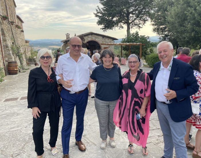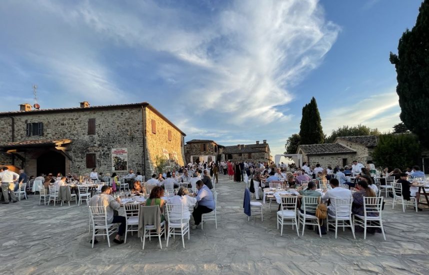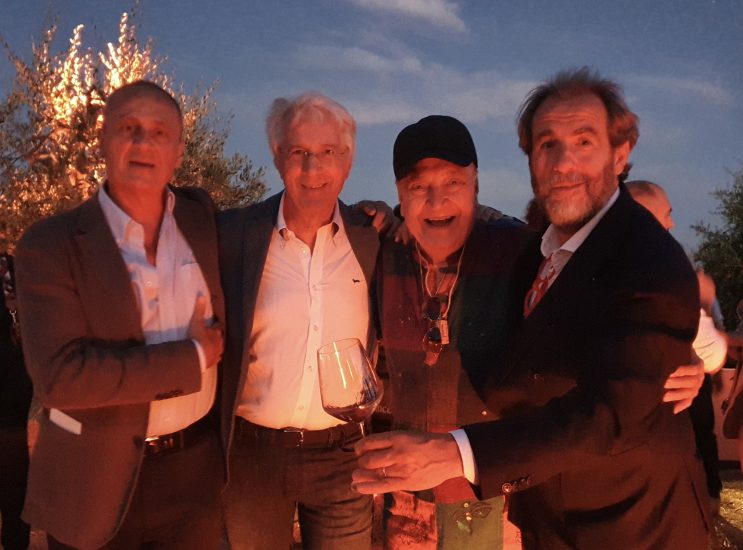 E non può certo mancare un Chianti Classico Gran Selezione 2019 da collezione, la “star” in bottiglia di Rocca delle Macìe, e la seconda edizione limitata, prodotta in sole 1971 magnum per ricordare l’anno di uscita della pellicola nelle sale, ottenuto dal Sangiovese allevato nelle Tenute Le Macìe e Sant’Alfonso, le prime ad essere acquistate nel 1973 da Italo Zingarelli, dedicata dai tre figli Fabio, Sandra e Sergio Zingarelli al padre, e “vestita”, questa volta, da “… Continuavano a Chiamarlo Trinità” sempre con la mano artistica dell’Officina Grafica di Firenze (il prezzo allo scaffale è di 200 euro, e la stessa edizione speciale è stata fatta lo scorso anno per il primo film con 1970 magnum di Gran Selezione 2016 dedicate a “Lo Chiamavano Trinità”, ndr). Ad assaggiarlo in anteprima, insieme a WineNews (che l’anno scorso aveva brindato con Terence Hill con il direttore Alessandro Regoli), tante personalità, del mondo del vino, delle istituzioni, come la vice presidente della Regione Toscana Stefania Saccardi, e del cinema, dai fratelli Guido e Maurizio De Angelis, gli “Oliver Onions”, gruppo musicale italiano di Roma, arrangiatori e autori di colonne sonore negli anni Settanta e Ottanta, e di quasi tutte le colonne sonore dei film della coppia Spencer-Hill, Daniele De Gemini, direttore artistico della Beat Records Company, la più antica casa discografica italiana specializzata in colonne sonore, il maestro Renato Casaro, uno dei più importanti e famosi cartellonisti cinematografici italiani, l’attore e chef Andy Luotto, il fumettista Baldisserotto ed il musicista Annibale Giannarelli, autore e interprete della musica di “Trinità” e il migliore in “The Voice Senior 2021”, che ha regalato (prima della proiezione del film) una performance al pianoforte, con una voce mitica, capace di far emozionare gli oltre duecento invitati ad una festa tanta bella quanto dal sapore familiare, sulla terrazza splendida della Tenuta di Rocca delle Macìe, tra la bellezza di un territorio coltivato dall’uomo e “dipinto” da cipressi, olivi e vigneti, a perdita d’occhio.