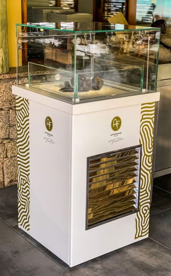 Un mix di design e funzionalità che mantiene il tartufo alla giusta temperatura e umidità, grazie a un sistema di ultrasuoni che, scindendo la molecola dell’acqua, la rende leggera e crea quella sorta di “nebbiolina” che accarezza il tartufo, ne conferisce il giusto equilibrio e soddisfa un bisogno di questo fungo, considerando che è costituito per l’80% di acqua, all’interno di una teca realizzata in krion, materiale antibatterico, non poroso, che può essere usato a contatto con i cibi, eco-friendly perchè 100% riciclabile e dall’elevata resistenza agli attacchi di sostanze, e che agisce al pari di un frigorifero capace di ricreare perfettamente il microhabitat del bosco consentendo così al tubero di vivere e mantenersi come se fosse in natura, rispettandone al massimo le caratteristiche. L’Italia è l’unico Paese al mondo dove si sviluppano la maggior parte delle specie di tartufi commestibili, sia in termini di varietà che di quantità durante tutto l’anno, e per la gioia dei gourmet, Appennino Food Group, terza impresa italiana del settore e unica Società per Azioni, lancia un progetto b2b innovativo fornendo ai ristoratori uno strumento per conservare il pregiato prodotto made in Italy.