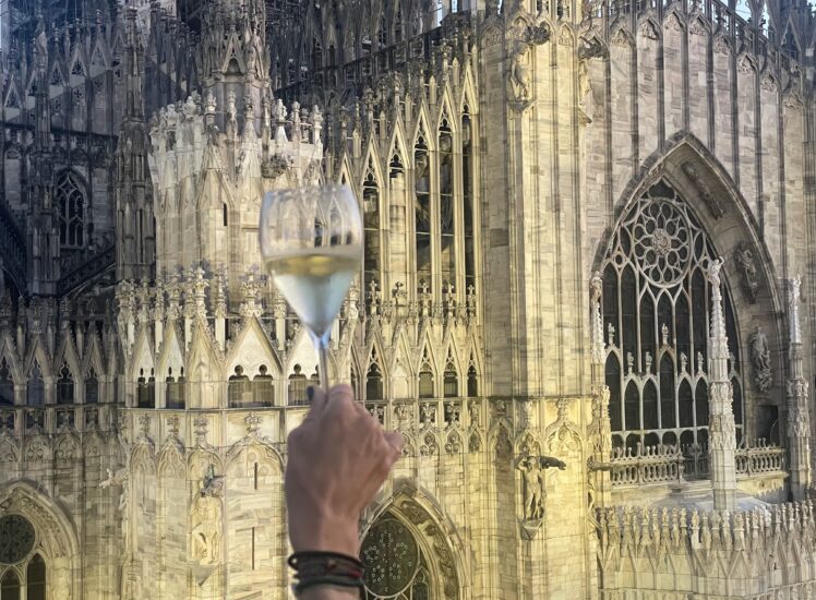Artigianalità e passione, qualità e dedizione, ma non solo, accomunano la produzione di vino in cantina e la nascita dei capi-icona della moda italiana. L’altra caratteristica in comune è la capacità di unire tutto questo all’estetica: quella bellezza italiana che ieri, degustando un calice di Franciacorta vicino alle celeberrime guglie del Duomo di Milano, sembrava di toccare con mano.
