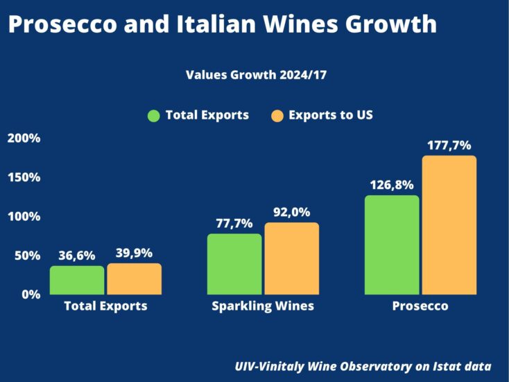 Che l’affermazione del Prosecco sia stata uno dei fatti più rilevanti degli ultimi 15-20 anni nel mondo del vino è cosa nota, ma a volte i numeri di lungo periodo riescono a rendere meglio l’idea. “Vale ormai il 31% dei consumi a valore di tutti i vini italiani commercializzati negli Usa, con un indice di penetrazione altissimo in tutte le fasce di età, a partire dai Millennials (27%) e dal target femminile (6 user su 10 sono donne). Ed è, ormai, anche il simbolo dei mixed-wine made in Italy. Sembra non conoscere crisi il matrimonio tra gli americani e il Prosecco, che a 15 anni dalla ridefinizione della piramide produttiva (Conegliano Valdobbiadene Prosecco Superiore Docg, Asolo Docg e Prosecco Doc) ha incrementato il valore del “nuovo” Prosecco a denominazione da zero a oltre 500 milioni di dollari. Un balzo del 178% solo negli ultimi 7 anni, il quadruplo rispetto al tasso di incremento complessivo dei vini made in Italy negli States”, rileva un focus dell’Osservatorio Uiv-Vinitaly rilasciato oggi, in vista di Vinitaly.Usa (Chicago, 5-6 ottobre), la fiera b2b dedicata al vino made in Italy.