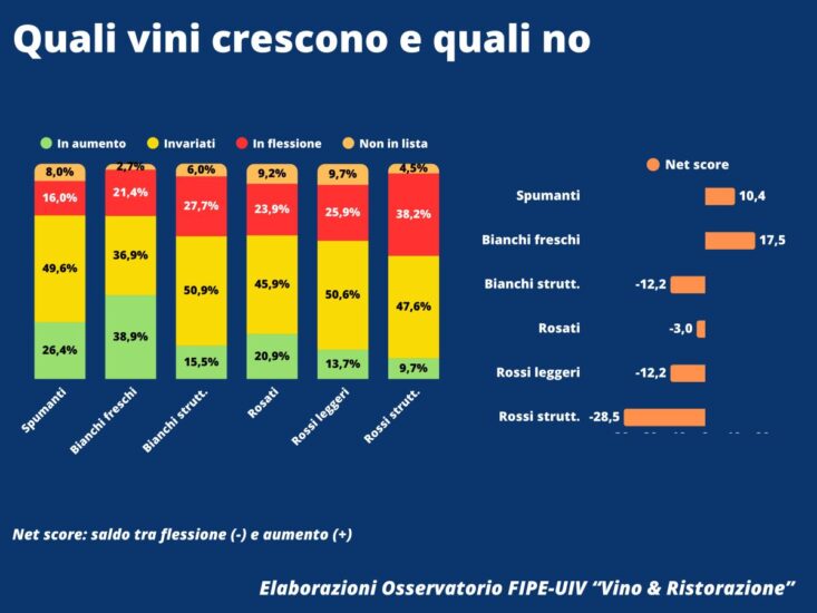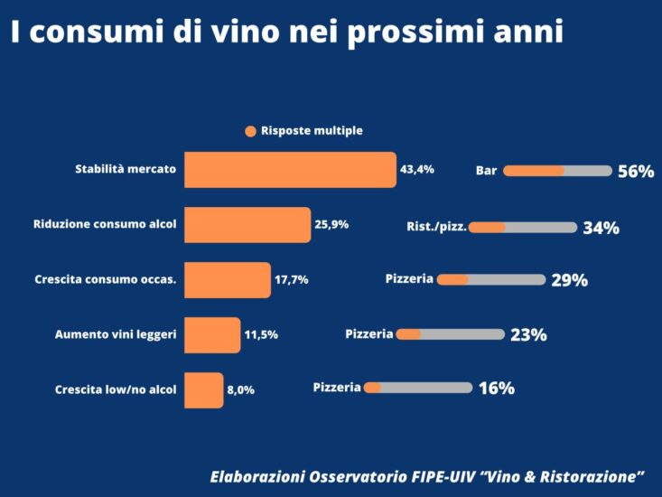 D’altra parte, come ha rilevato Lino Enrico Stoppani, presidente Fipe-Confcommercio: “il vino è elemento strategico dell’offerta della ristorazione italiana, sia sul piano economico che culturale, perché contribuisce a definire l’identità e la qualità dell’esperienza per il cliente. Non c’è piena convivialità senza l’accompagnamento del pasto con un buon vino. I dati dell’Osservatorio evidenziano però la necessità di investire di più in formazione e comunicazione, a partire dalle carte dei vini da migliorare negli assortimenti proposti, che restano uno strumento fondamentale di valorizzazione dell’offerta complessiva dei ristoranti. In un contesto di consumi in rallentamento, è sempre più importante rafforzare la collaborazione tra ristoratori e produttori per intercettare le nuove tendenze e costruire un’offerta coerente e competitiva, capace di sostenere anche la marginalità delle imprese”.